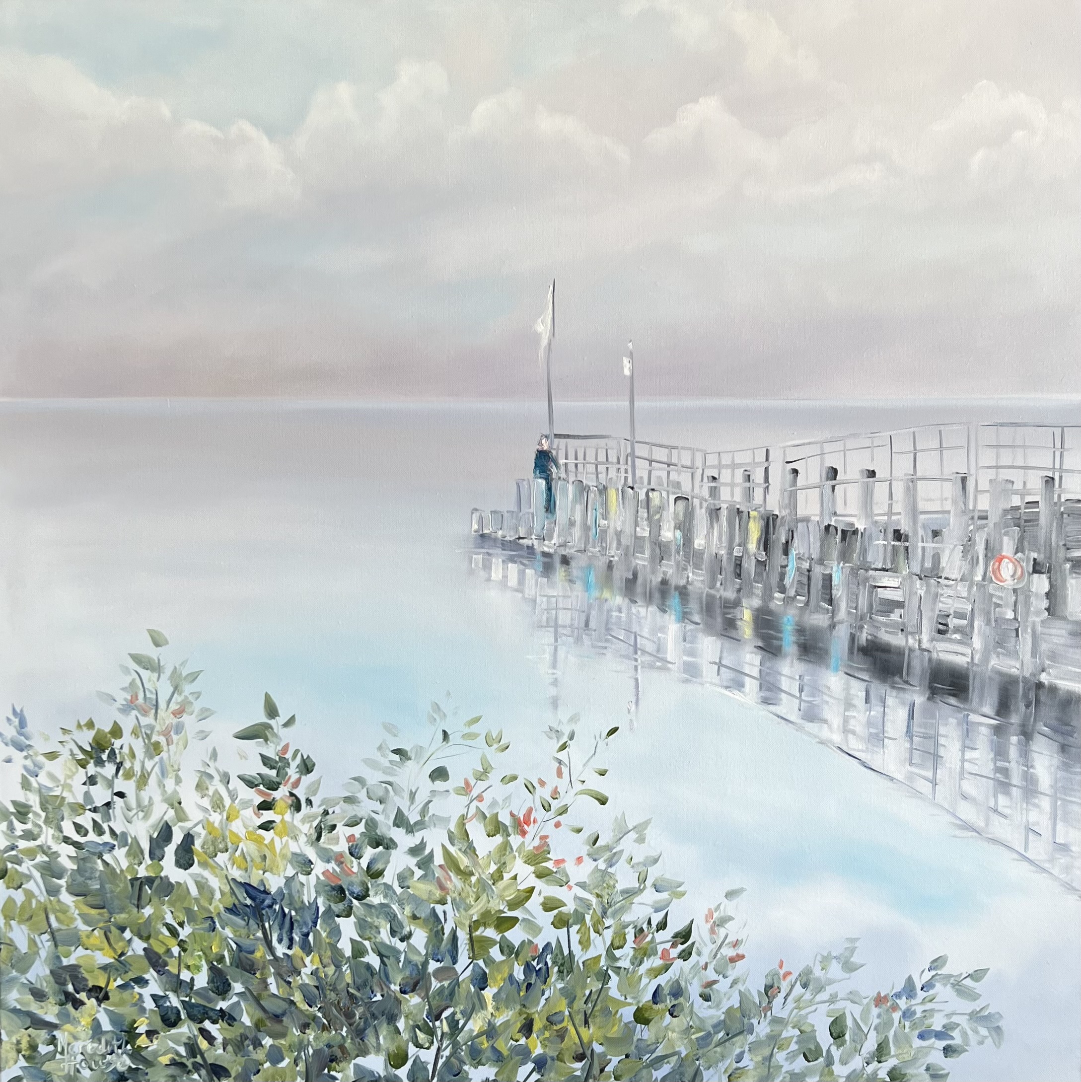 Lake Windermere by Meredith Howse captures the serene beauty of the Lakes District in England, offering a breathtaking portrayal of a tranquil morning scene. The artwork immerses viewers in the ethereal ambiance of early morning, when the lake mirrors the surrounding landscape with pristine perfection, resembling a sheet of polished glass. The reflective surface of the lake captures the undisturbed beauty of the moment, mirroring the world around.