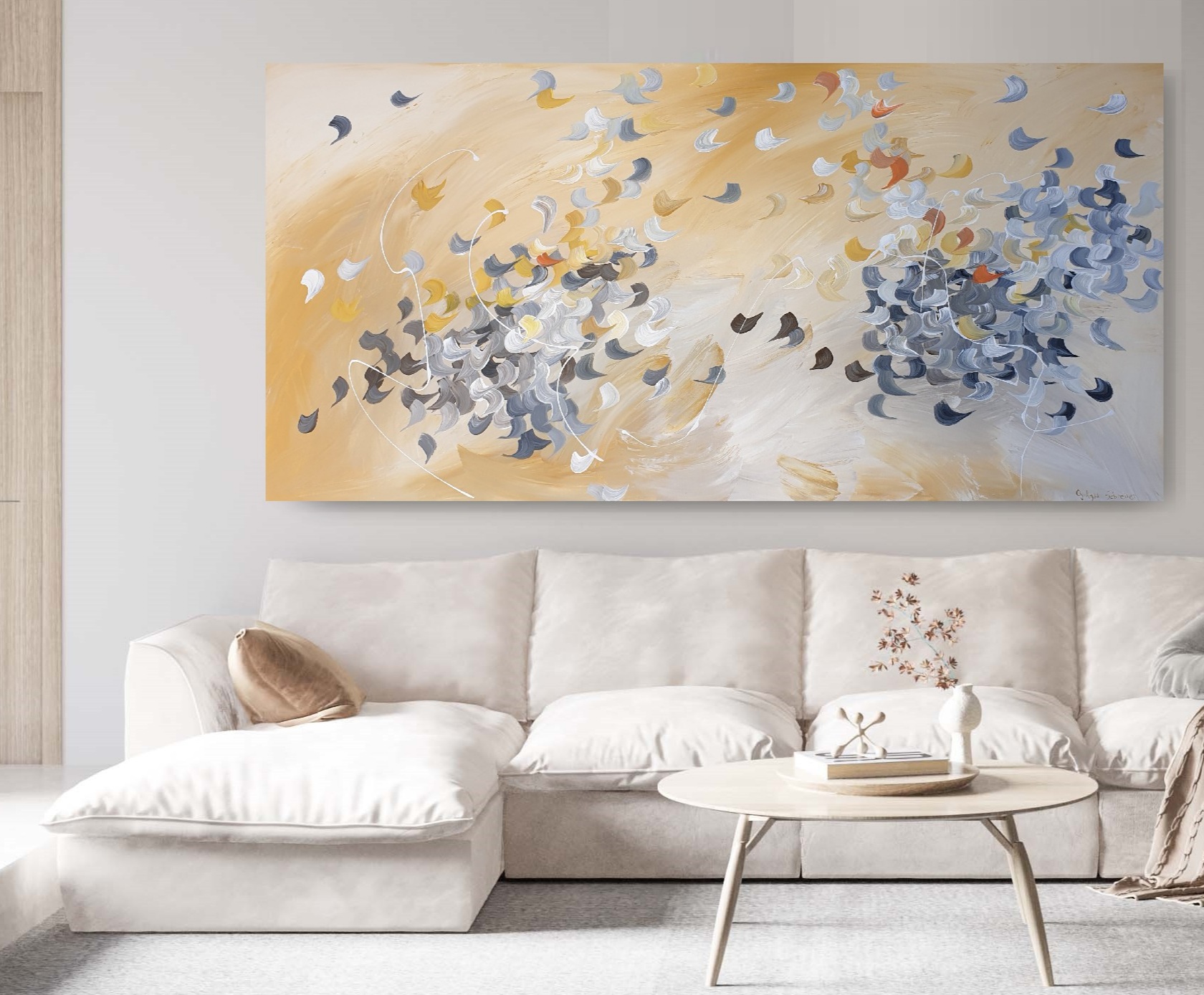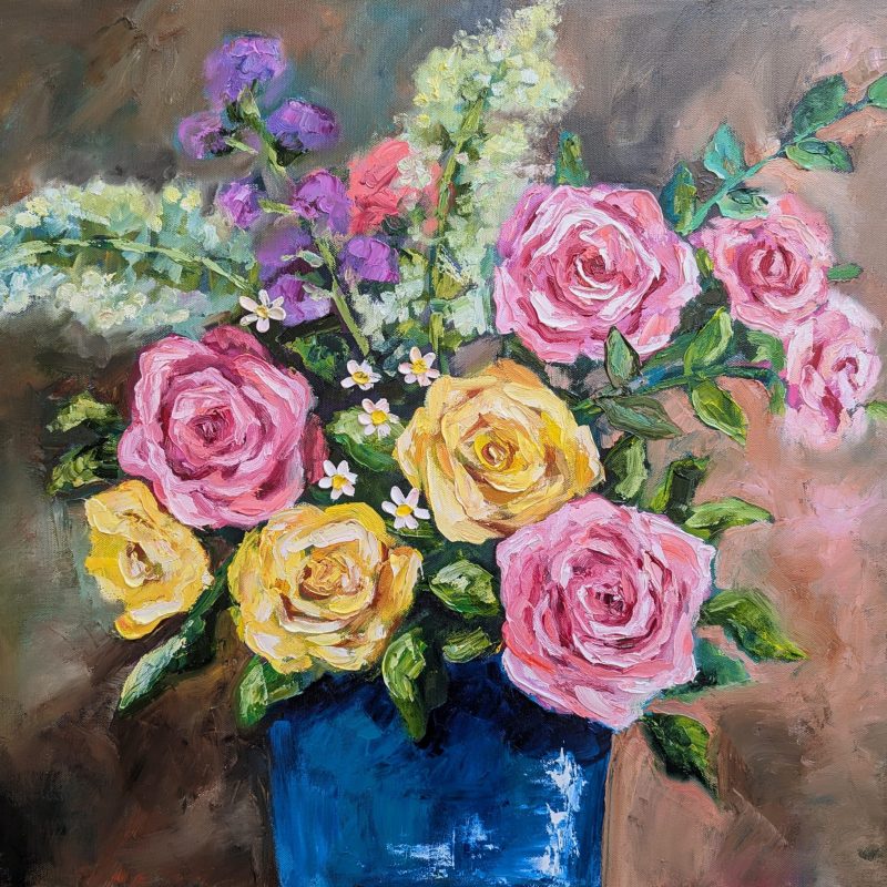 I view painting as sheer passion and feeling. Through my process I don’t seek to depict a set idea or subject, but instead I let scenes and dynamic movement emerge organically.