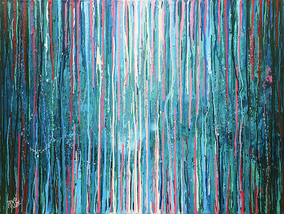 Letting thick drips of oil colour slowly slide down over a blurred background from top and bottom to create depth.