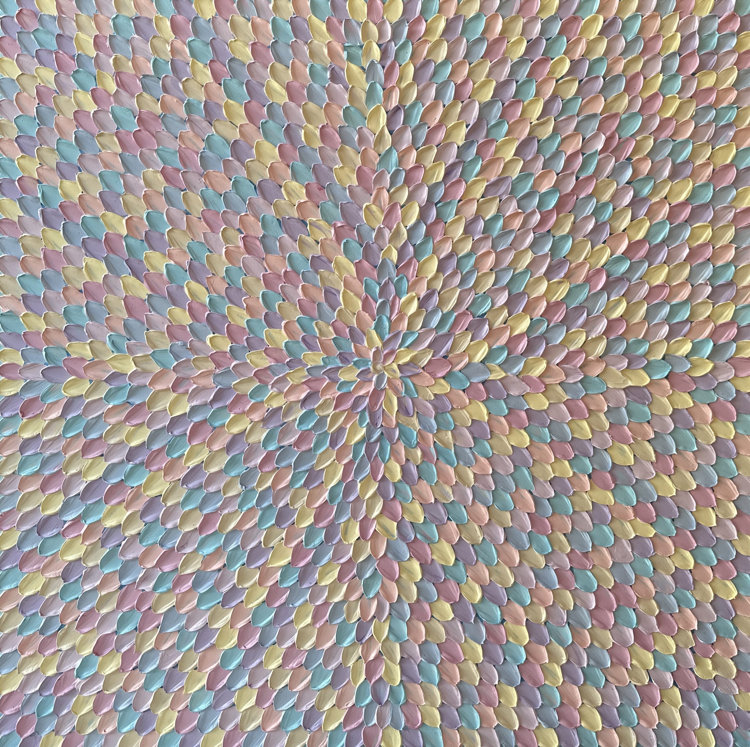 This artwork color palette was inspired by candy floss and beutiful pink, blue and yellow pastel colors.