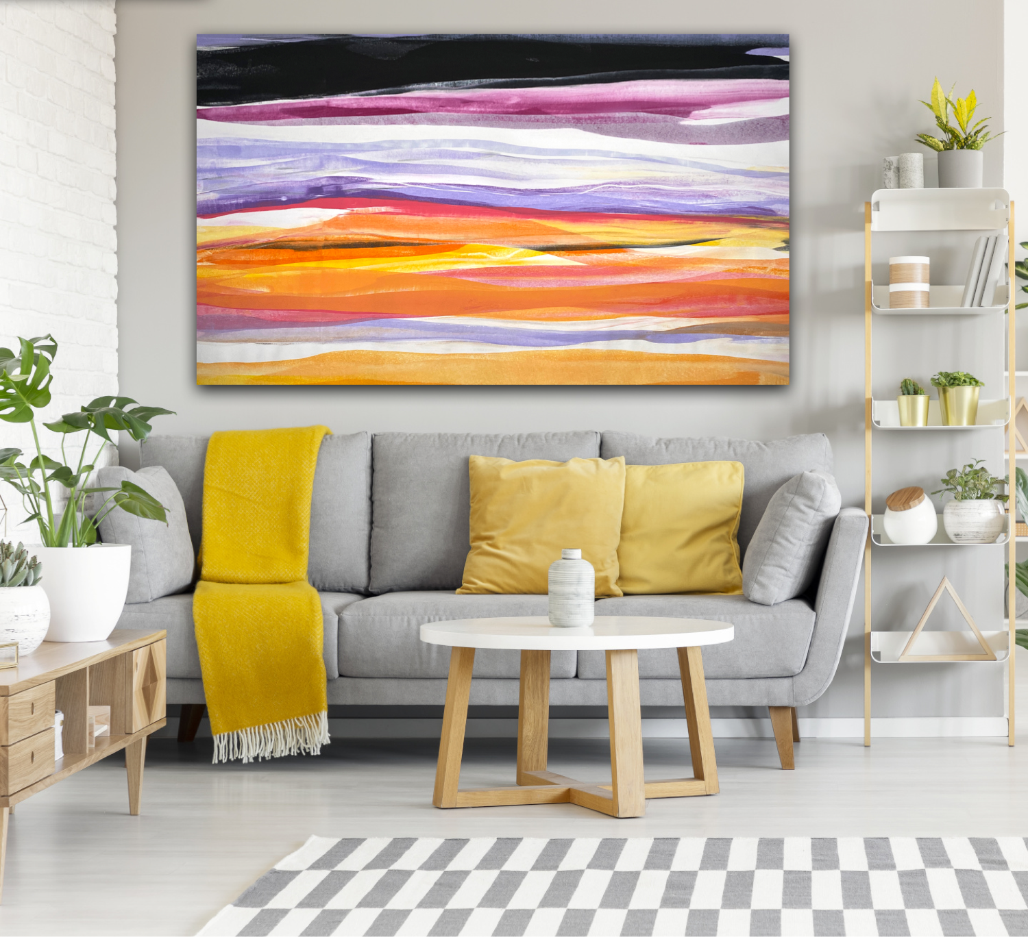 This original painting with it’s intriguing mark making and vibrant palette of warm and cool tones is the perfect statement piece for a large space.