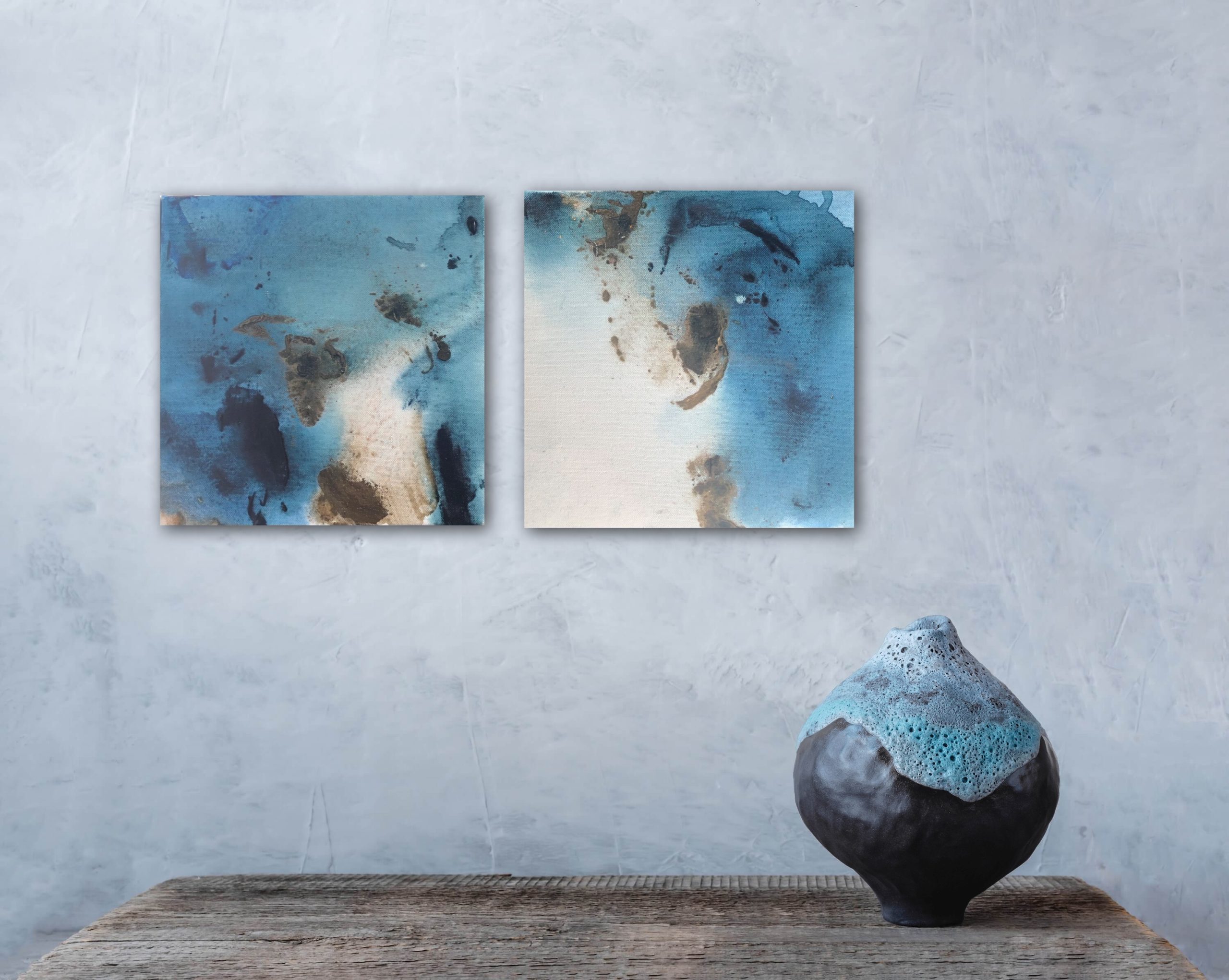 Cape by Carmel Reilly – Original acrylic aerial diptych paintings inspired by the Kimberley region of Western Australia, particularly the Berkley River and Cape St Lambert. Hooks and wire included.