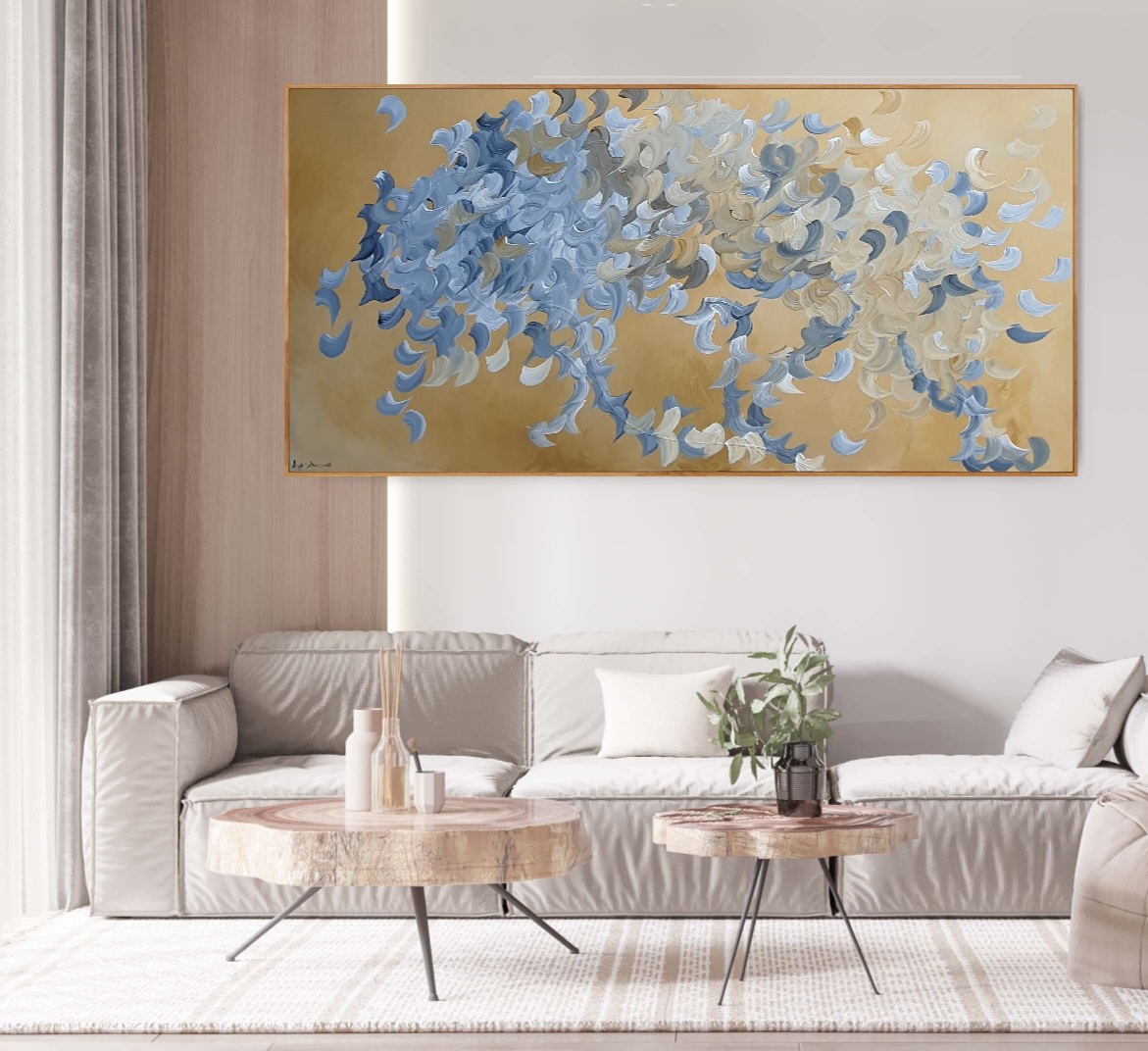 I view painting as sheer passion and feeling. Through my process I don’t seek to depict a set idea or subject, but instead I let scenes and dynamic movement emerge organically.