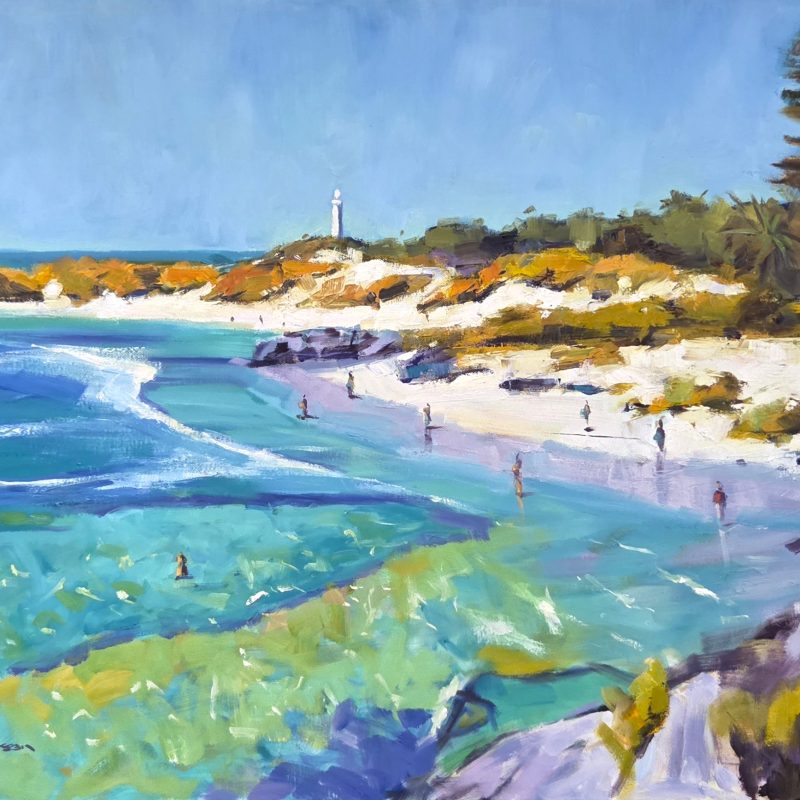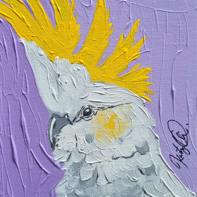 The stunning Carnaby’s Cockatoos are regular visitors in our garden, always feasting on gumnuts and making a delightful racket. This painting the cockatoos perched on Pingle Banksia and eucalyptus branches.