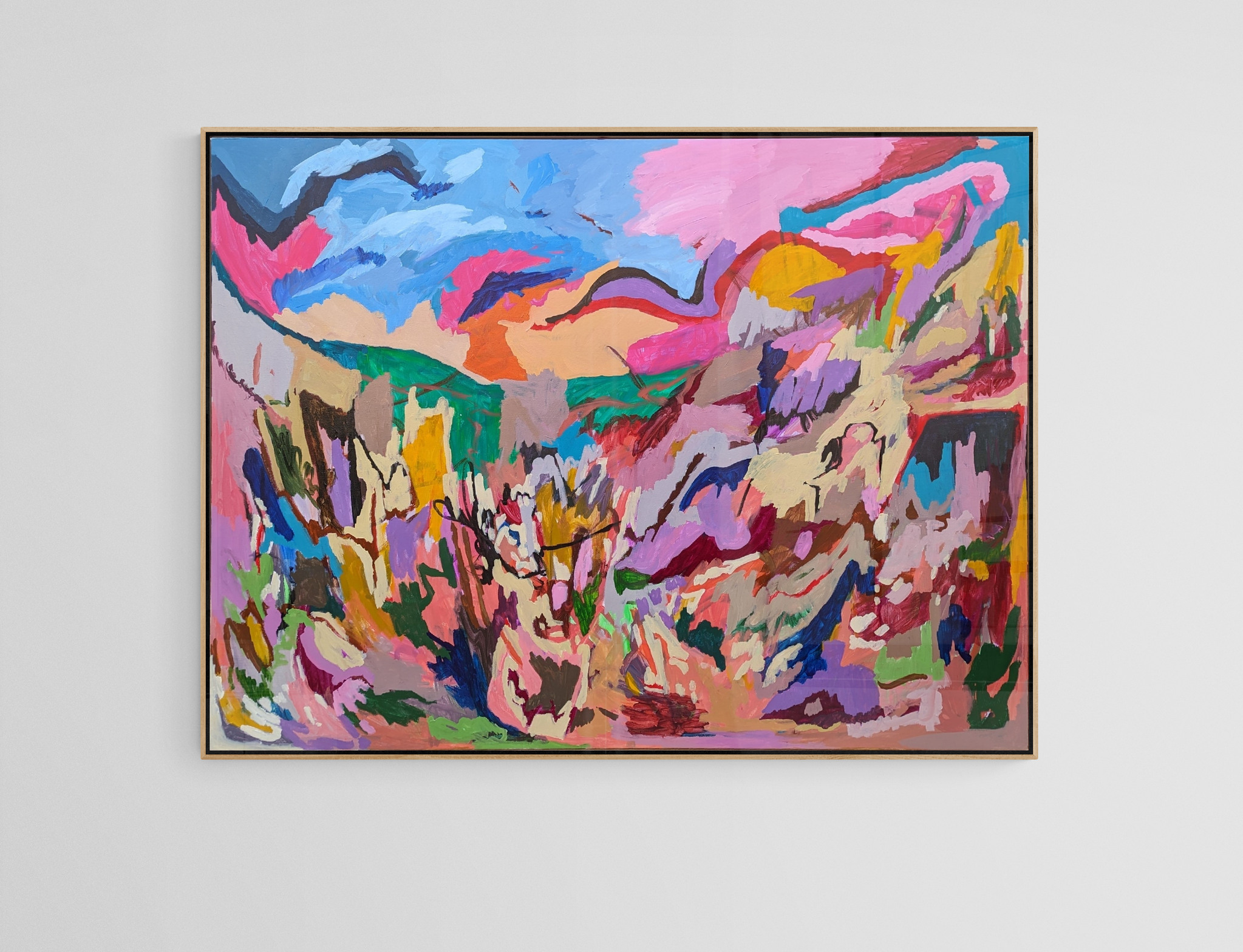 ** Painting is Framed In Natural Oak