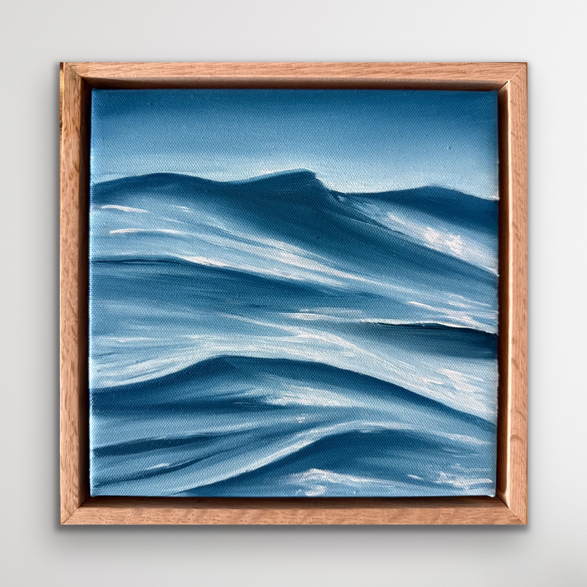A calming seascape that captures the gentle rhythm of rolling waves and the deep sense of belonging they inspire. Painted in soothing shades of blue with delicate highlights of white, this artwork evokes the freedom of open waters and the comfort of cherished memories spent by the sea. Each brushstroke flows with quiet motion, yet the overall composition radiates serenity and stillness. A meaningful gift that speaks to the heart, this piece comes professionally framed in natural timber, ready to hang and enjoy.