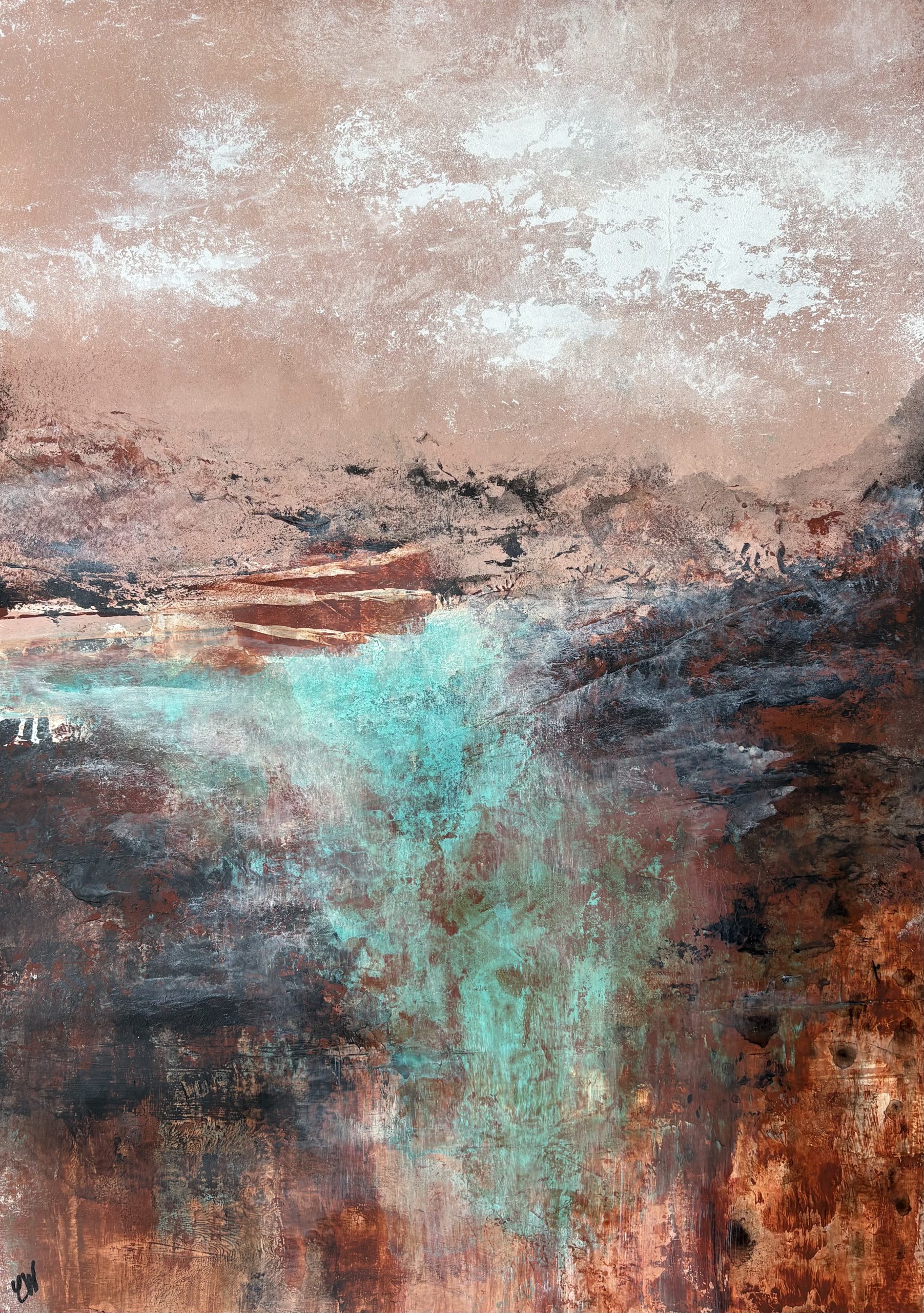 A beautiful abstract landscape. 59.4 x 42 cm (A2 size). Acrylic on paper. Frame not included. Requires framing.