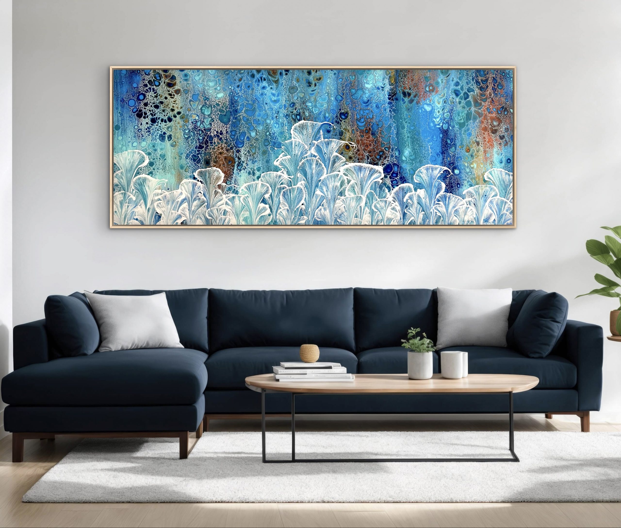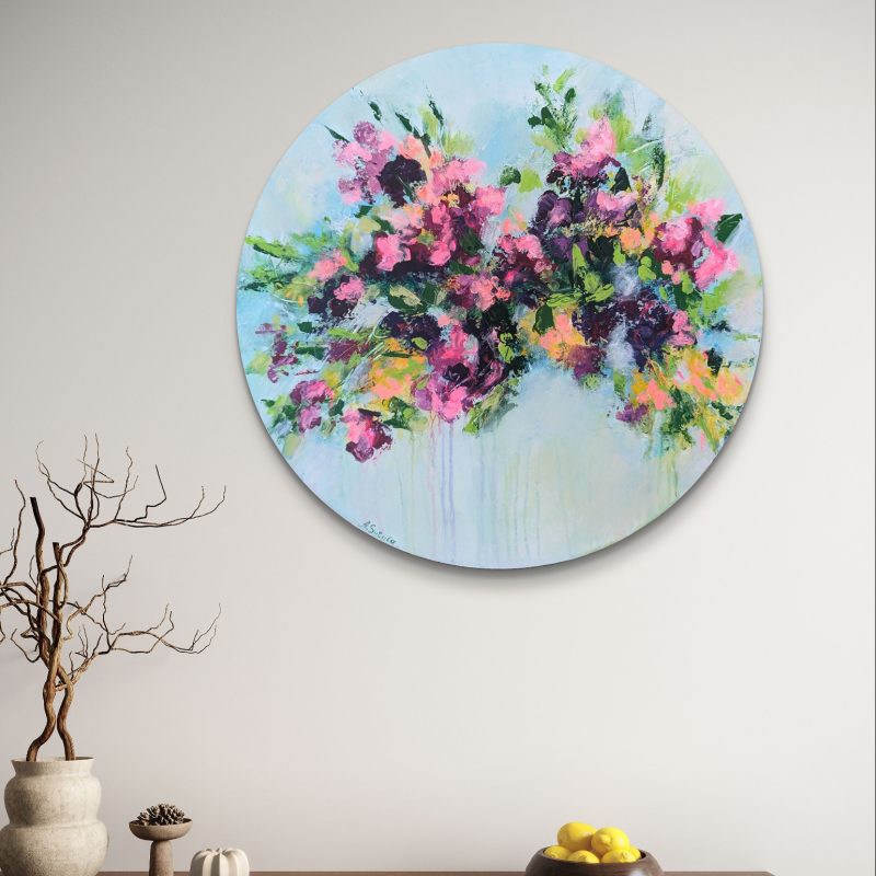 This artwork is available now and is ready to hang. It will leave my studio within 3 business days. The painting continues down the sides of the canvas so there is no need to frame. The greatest of care is taken with all my artwork and it will be carefully wrapped in bubble wrap and sturdy cardboard. Packaging and delivery within Australia are included in the artwork price.