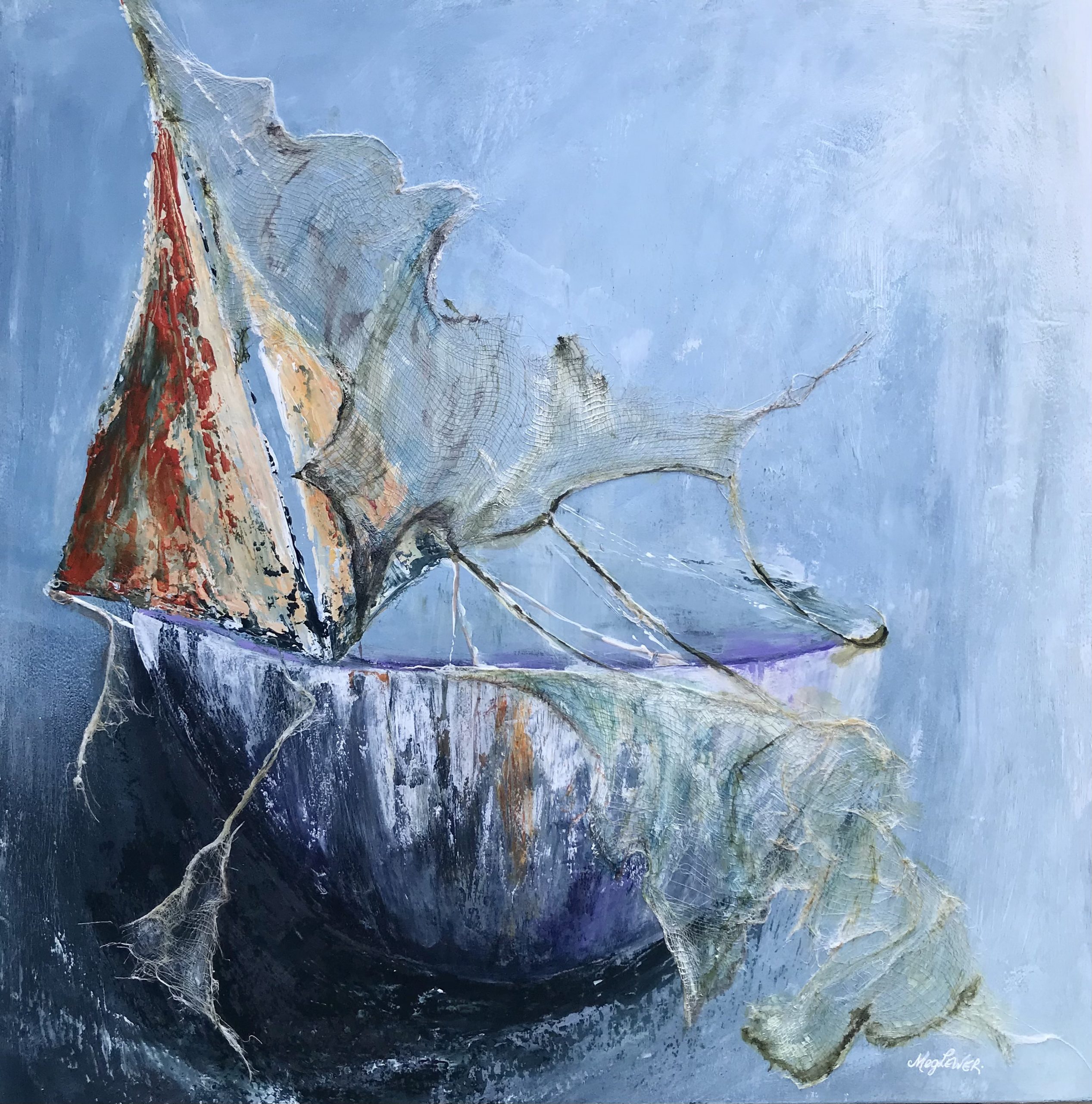 Cast your Fate by Meg Lewer – These tattered sails within a boat-bowl summarised the year of 2020 for me and I am going to throw my fate to the winds for 2021.