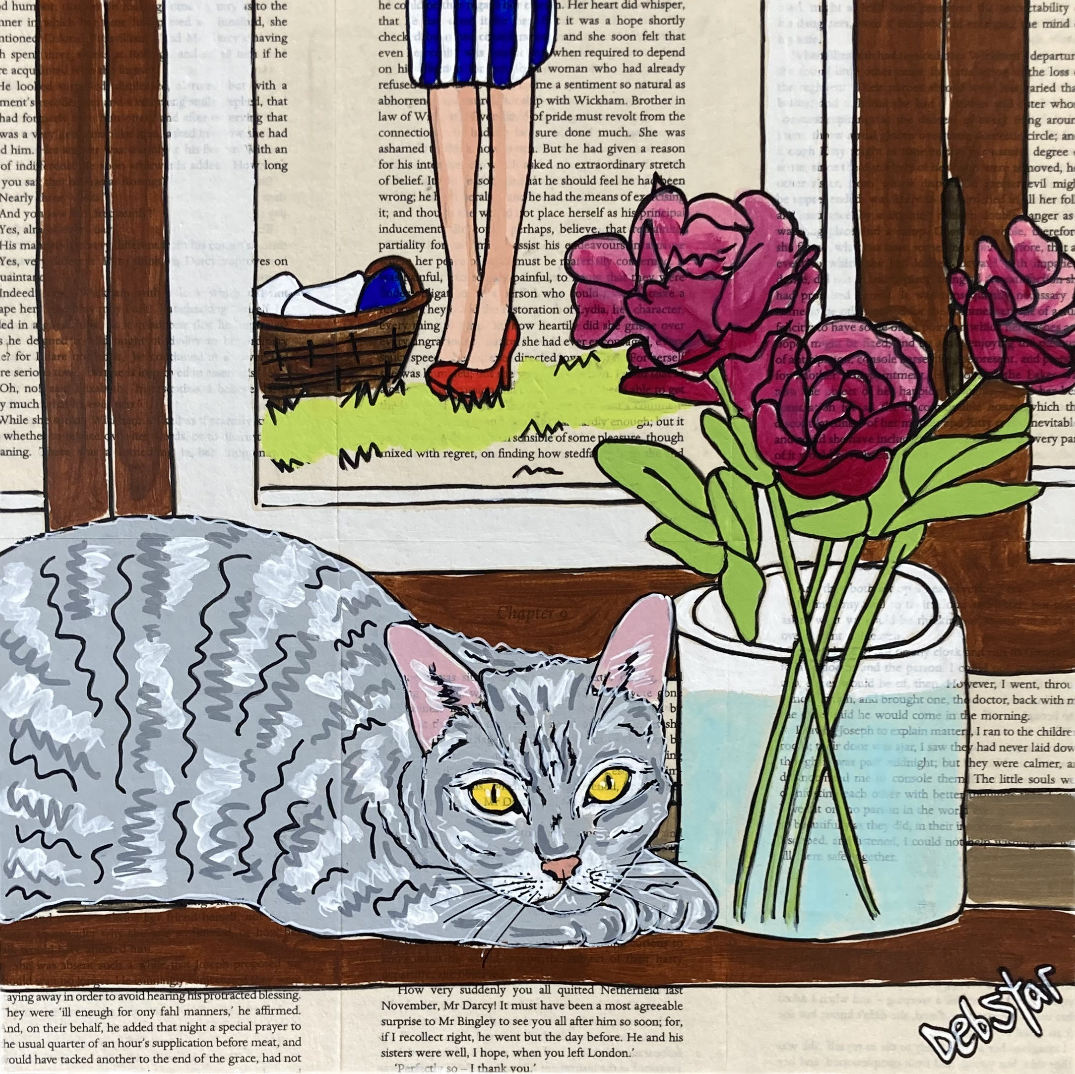 Cat Capers – Flowers and Washing by Deborah Lang This cute cat series explores everyday life scenes centred around a cat 🙂