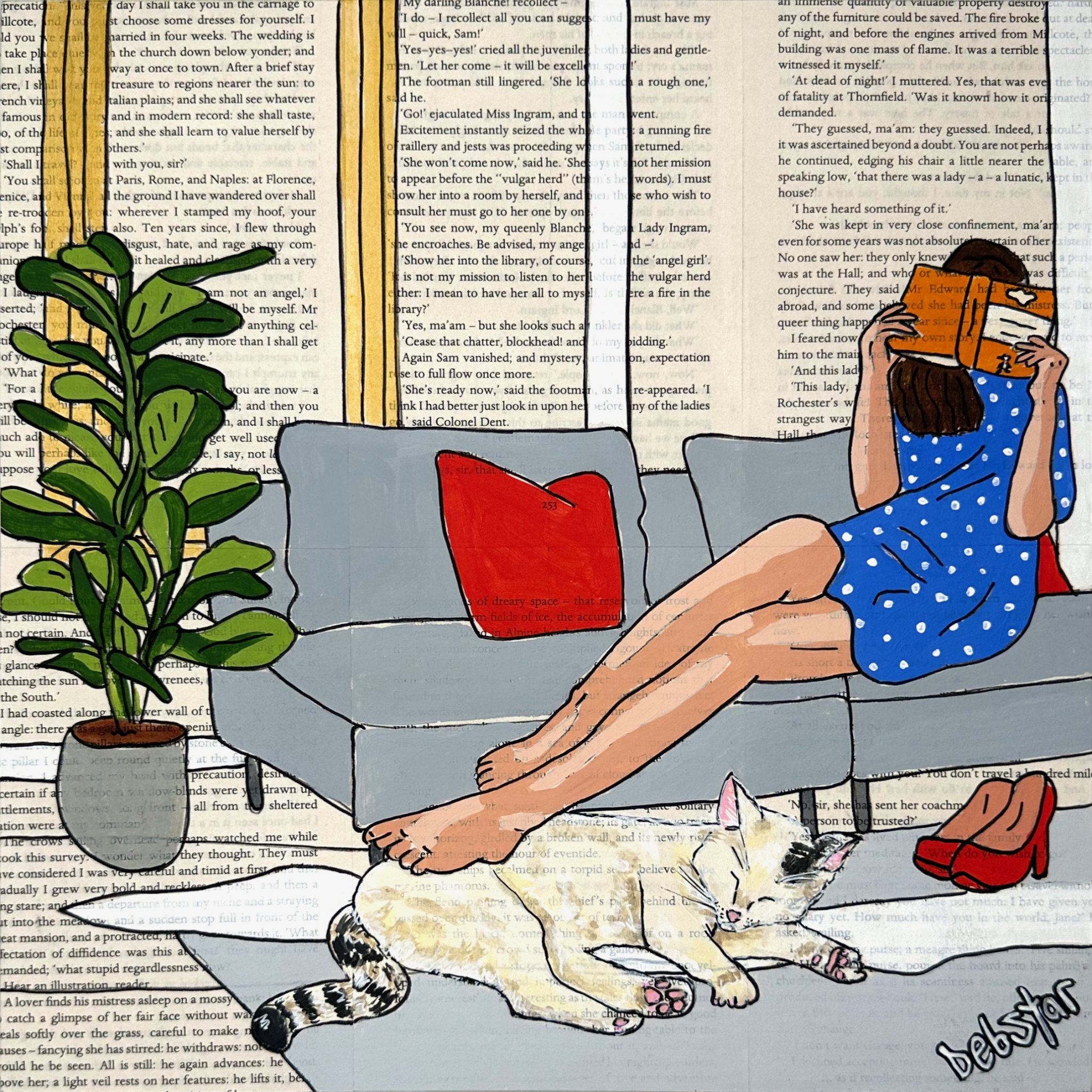 It is painted on a base of book pages, which I have attached to wood panels.