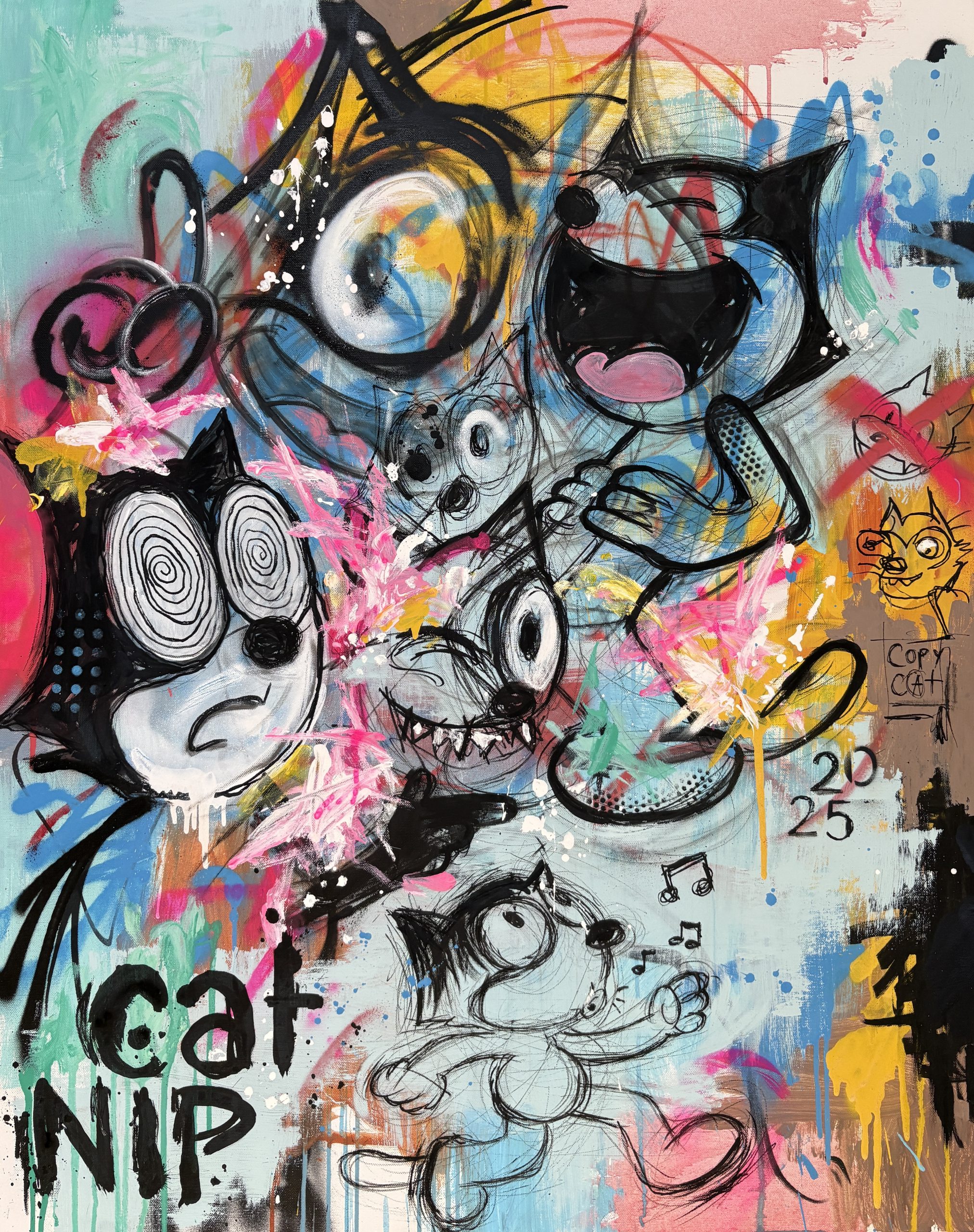 My art is directly influenced by Graffiti in City Laneways, Vintage Billboards and other weathered surfaces & is also inspired by my love of gestural abstraction and my obsession with using spray paint.
