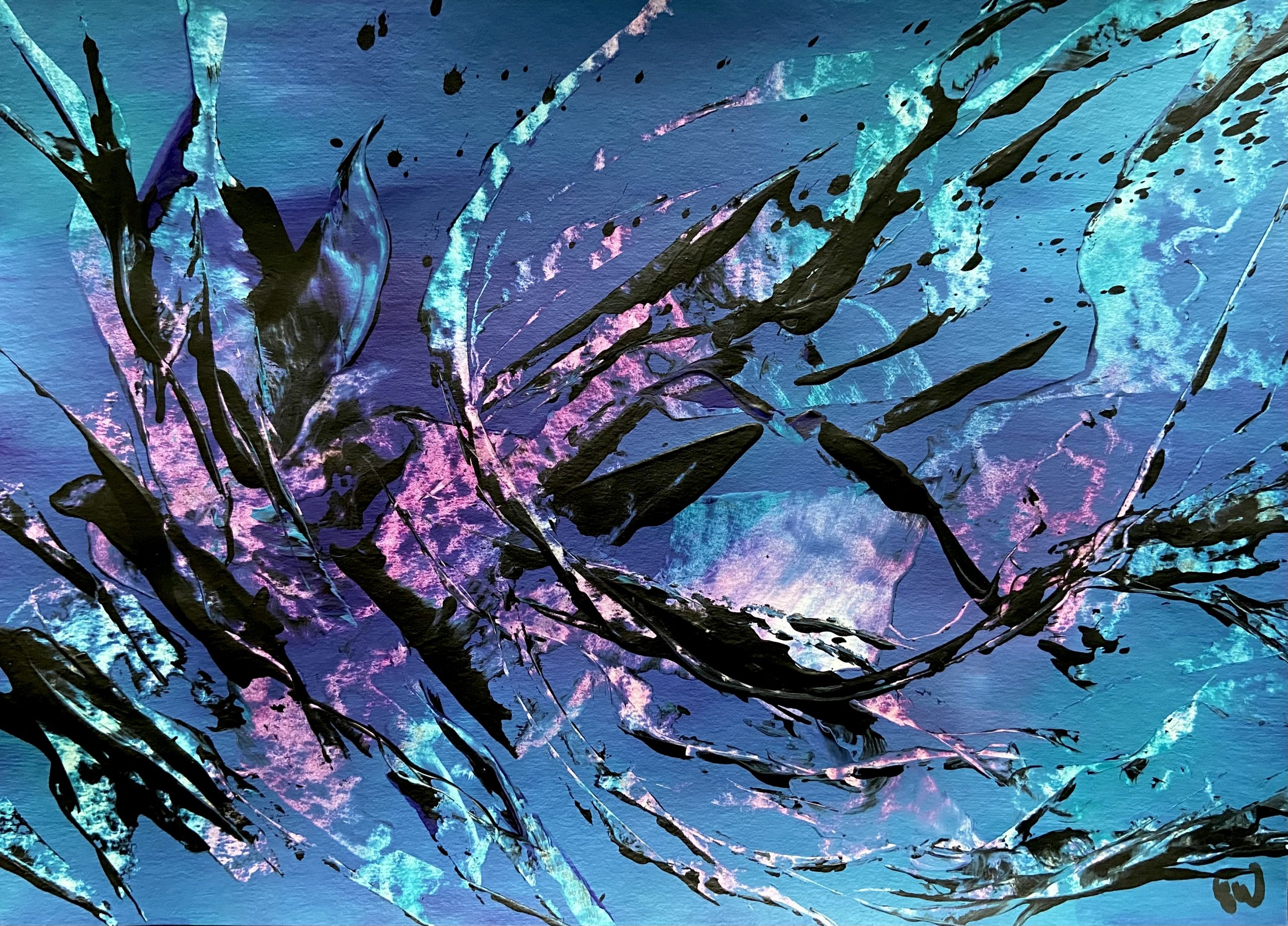 Catching Feelings by Carrie Welsh is a beautiful abstract piece that has captured flow and movement. This stunning piece will add life to any space.  Some images show what this piece looks like framed. Frames not included. 29.7 x 42 cm (A3 size) Acrylic on paper. Requires framing.
