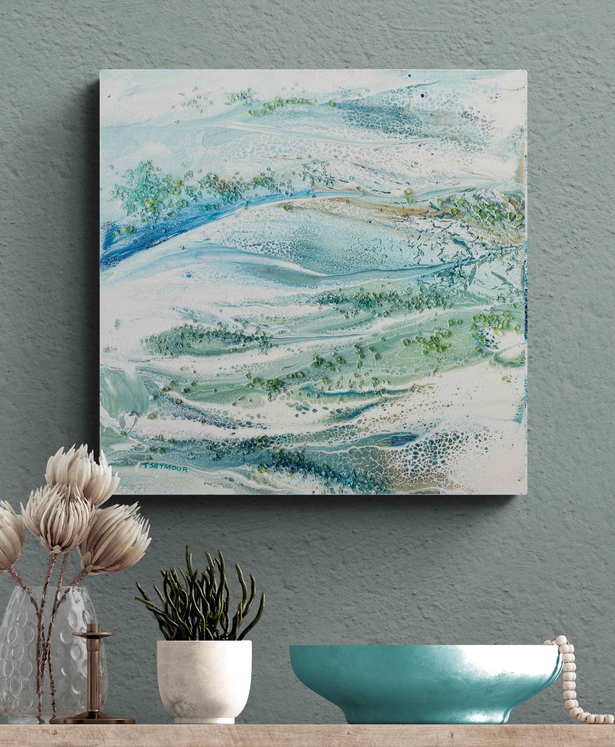 Depending on where you live, the ocean is different not only in looks but in habitat. Waters vary in temperature and so attract different types of marine life and ocean flora. Living by the Bay in Melbourne, I am witness to the ocean changing from a calm “Mill Pond” to a raging surf beach. This particular piece is a reflection of our warm northern waters during a tropical storm. The salty waters churning and frothing, creating huge swells in the ocean. A wonderful site from the safety of the stable shoreline.