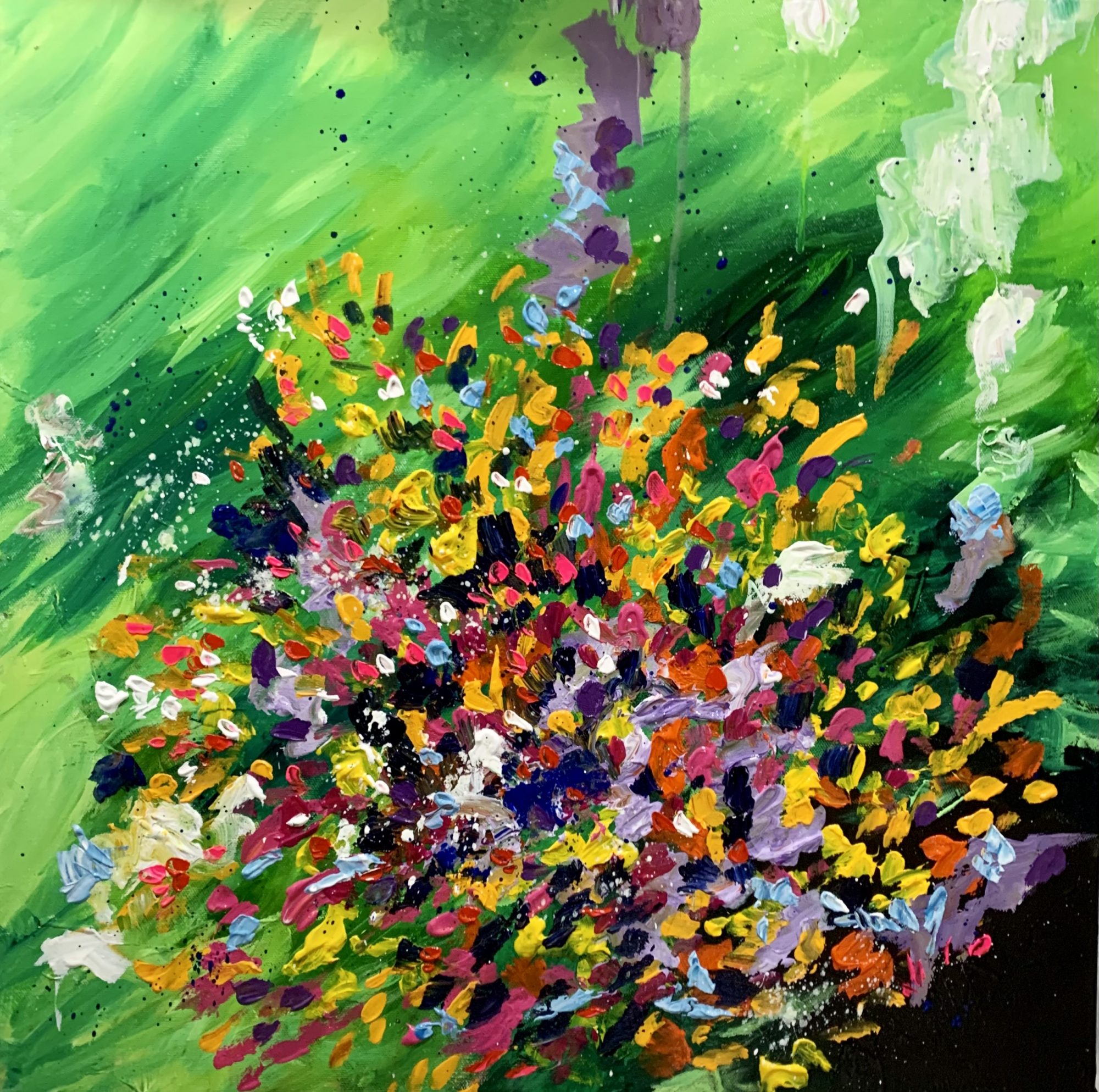 Original abstract artwork. Acrylic Paint on streched canvas, framed, and ready to hang.
