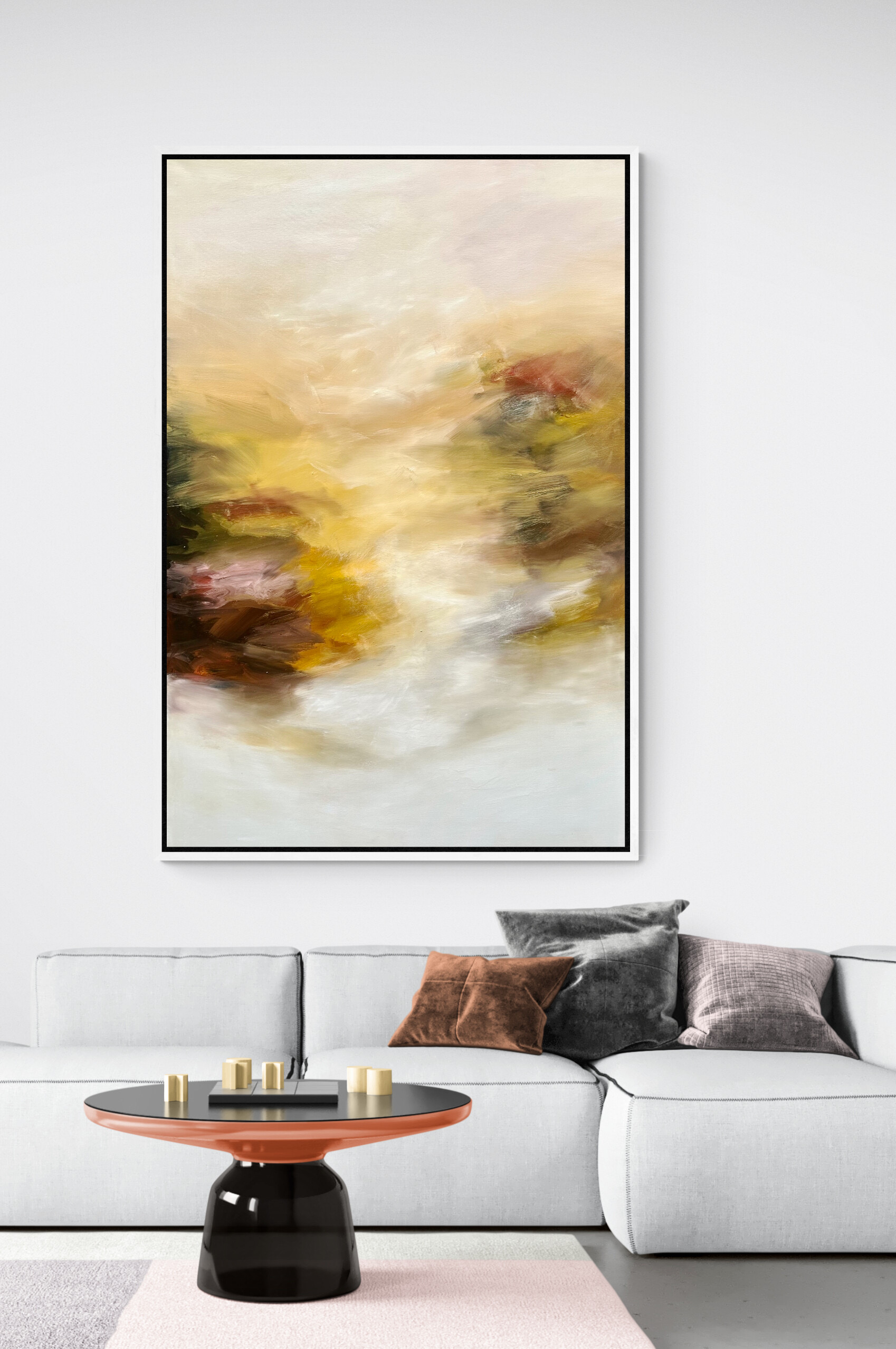 Celebration of Light by Theo Papathomas  a painting celebrating colour and light of the Australian landscape. A very soothing and tranquil painting where sky, clouds come together to create this beautiful harmonious landscape. Capturing the beautiful colours of the Australian landscape , browns, ochre and pastels against the light colours of the sky. Light covering the landscape and capturing the beautiful rhythms and shades of the outback .Painted in a very expressionistic way with oil paints, with lots of layers of paint . I tried to create so much depth in the painting and lots of texture .A very harmonious composition of colours and forms that makes it a very poetic and romantic painting . This painting does not come with an external frame.The painting is signed and dated 2023 at the back and comes with a certificate of Authenticity.