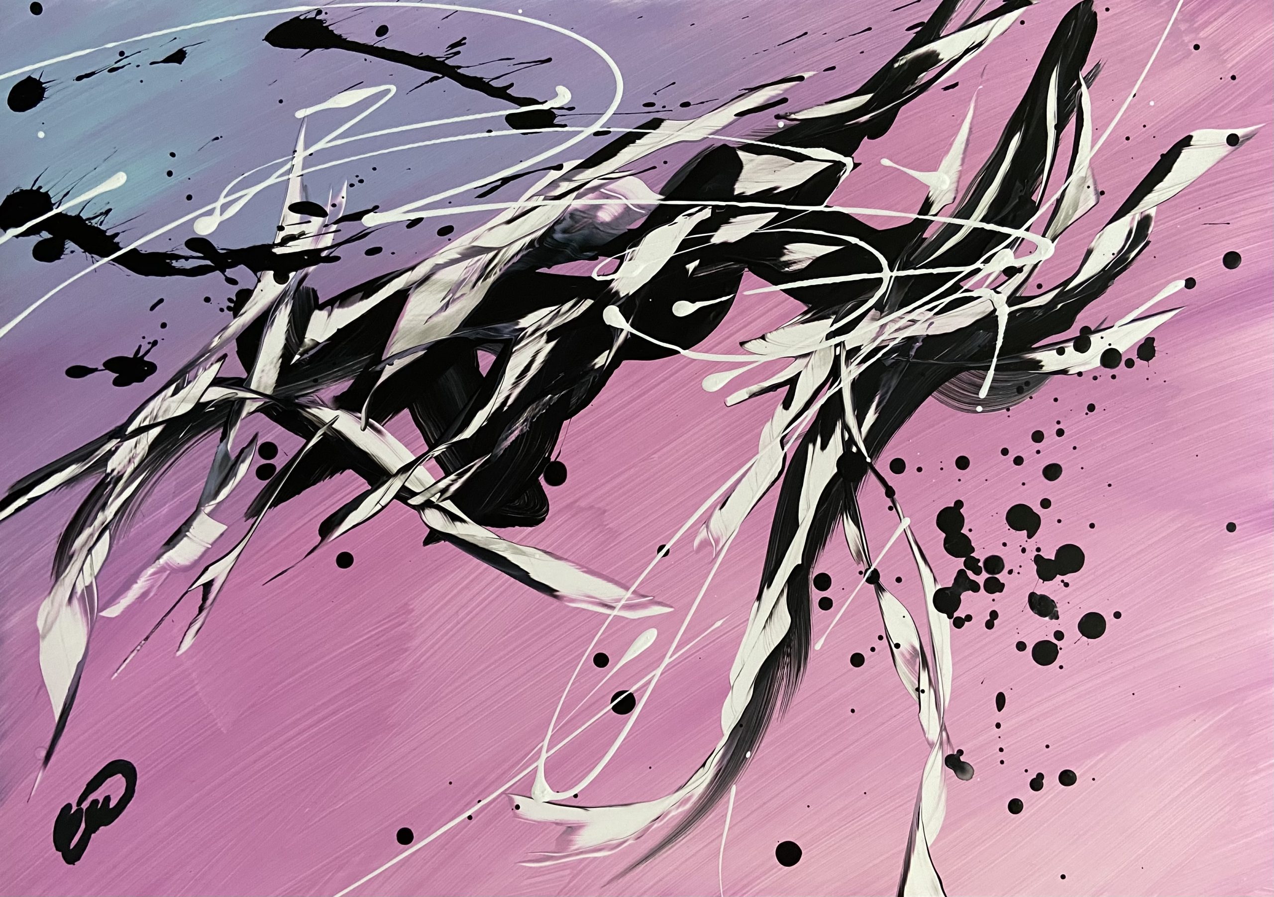 Charmed by Carrie Welsh is a striking and beautiful abstract piece that has lots of life and movement captured within it. 29.7 x 42 cm (A3 size) Acrylic on yupo paper. Requires framing.