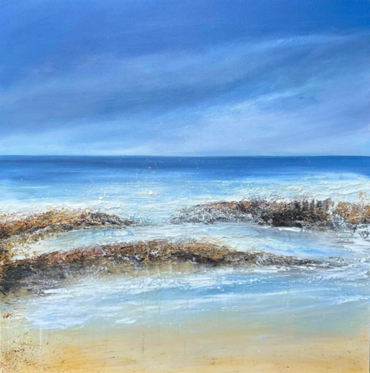 Inspired by the incredible diversity of the Australian landscape from its rugged coastlines, snow-capped mountains and the idiosyncratic landscape of the sandy desert with its sun baked monoliths and rainforests. The painting continues on the edges edges and comes with professional wire hanger and a Certificate of Authenticity.
