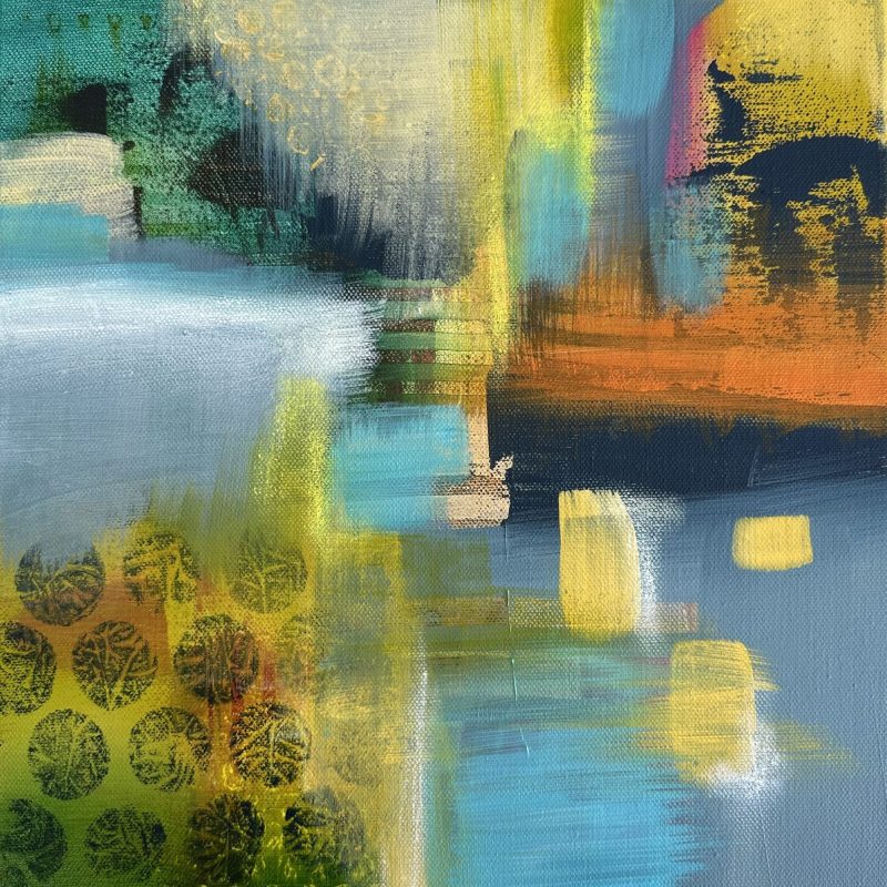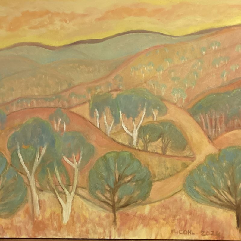 Chasing The Light by Wendy Peters – original oil on canvas. Glass captures light perfectly in a vase of hydrangeas, Reminding me of living in the UK countryside, walks with our Weimarana through paddocks and across green fields. We always had huge pots outside filled with various colours of hydrangeas, such a delicate but hardy bloom. This beautiful piece would work as a focal point so well in either a contemporary, classic or cottage setting. Unframed. Signed on the front.