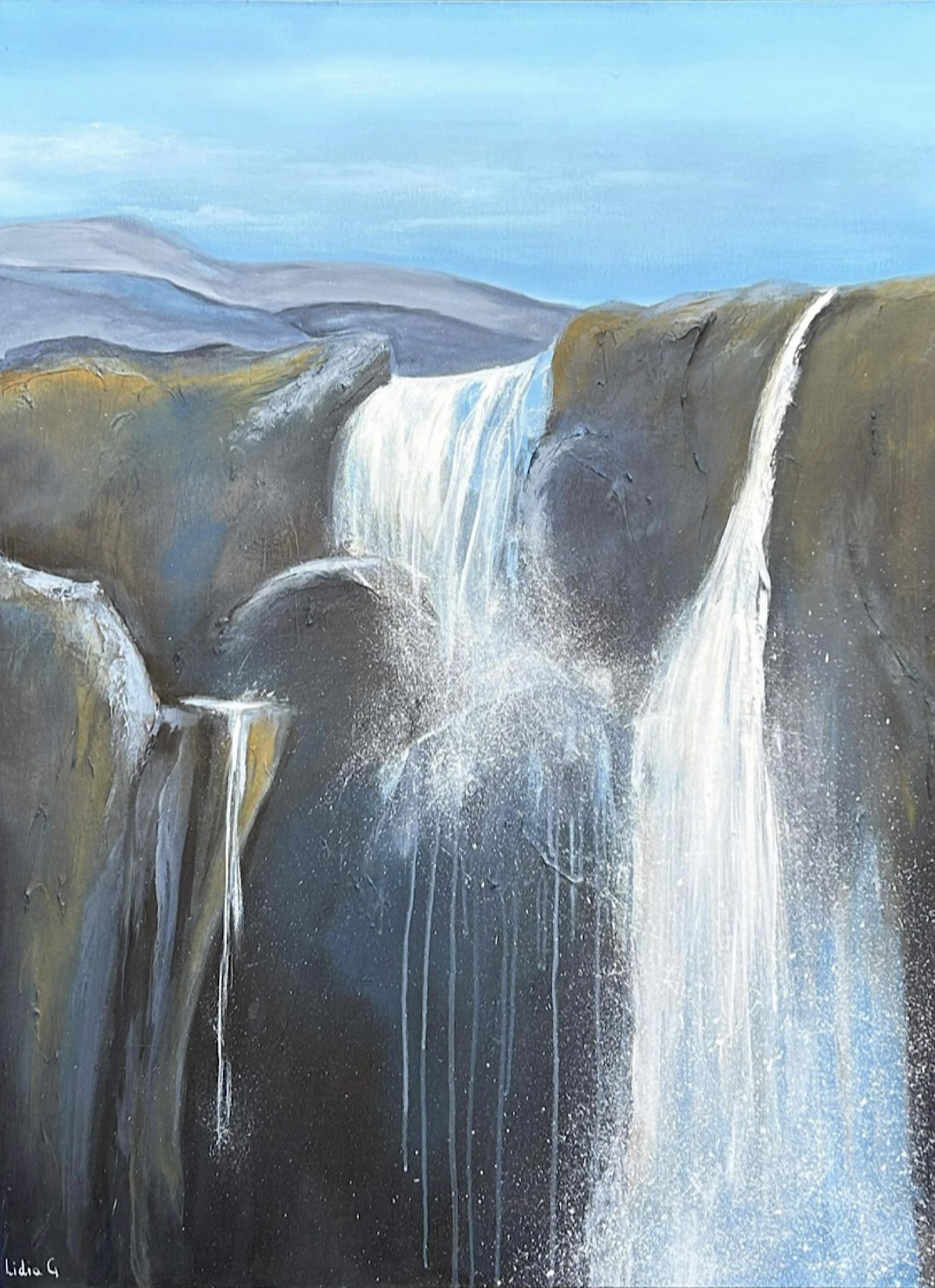 Inspired by the incredible diversity of the Australian landscape from its rugged coastlines, snow-capped mountains and the idiosyncratic landscape of the sandy desert with its sun baked monoliths and rainforests. The painting is heavily textured and the edges are finished in Titanium white and is also varnished for protection. It also comes with professional wire hanger and a Certificate of Authenticity.