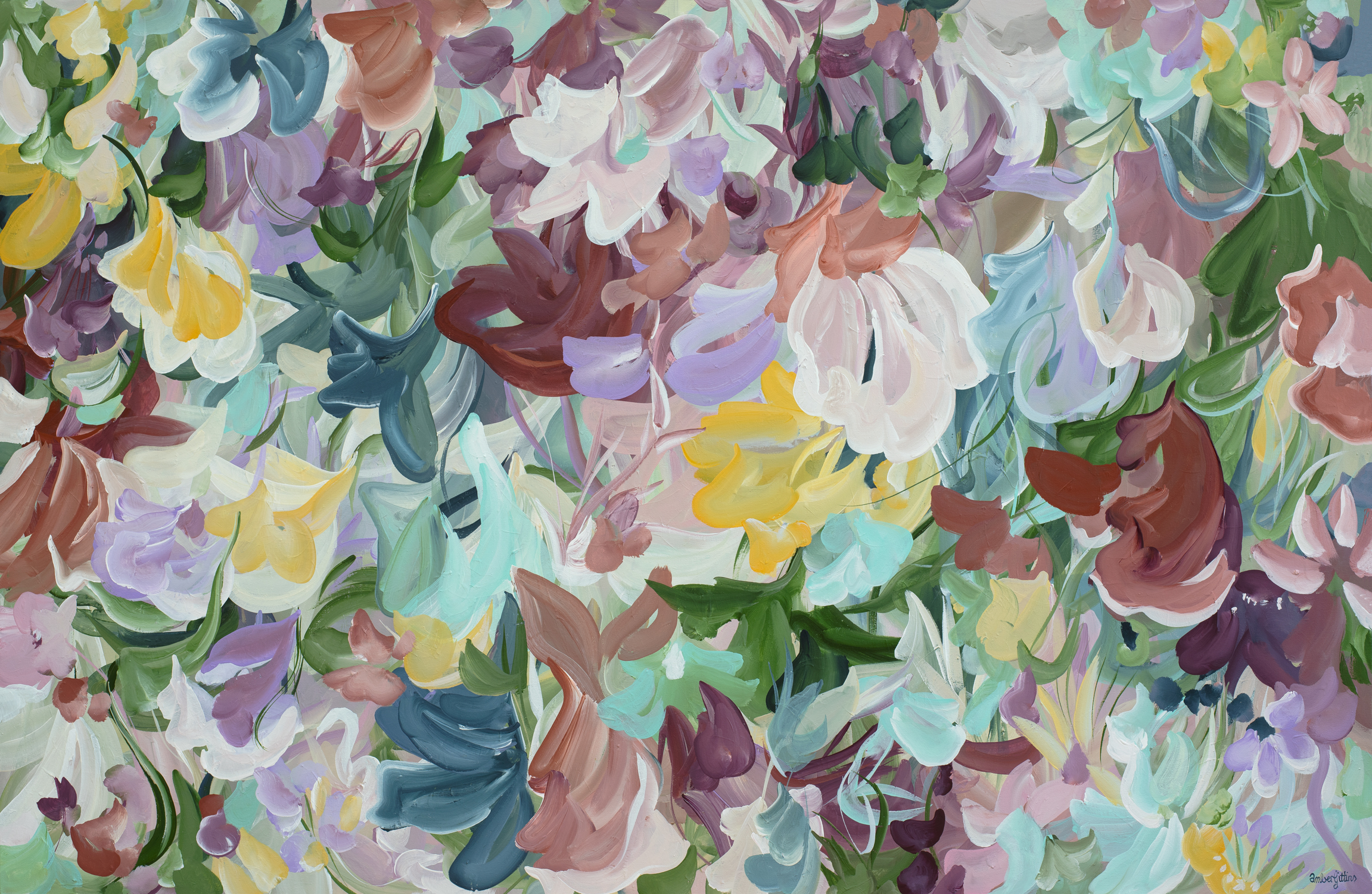 Chasing Wildflowers – Large Colourful Floral Landscape Abstract original painting by South Australian nature artist Amber Gittins.