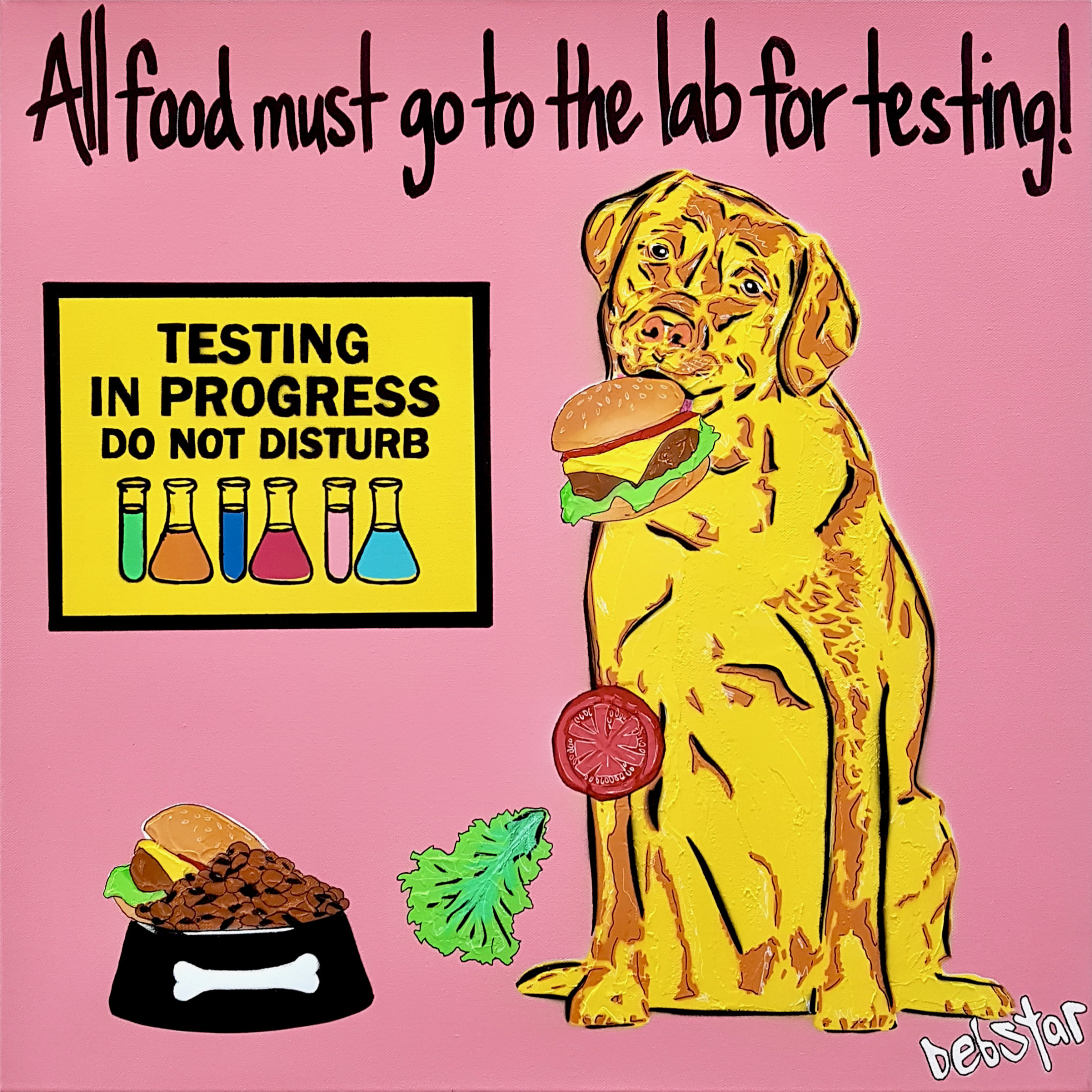 I saw this meme flash up on my instagram feed a while back, it made me laugh 🙂 …this image of a dog testing food in a science lab setting popped into my head when I read it, and as Labradors are definitely foodies this is perfection :)… so I decided to paint it!