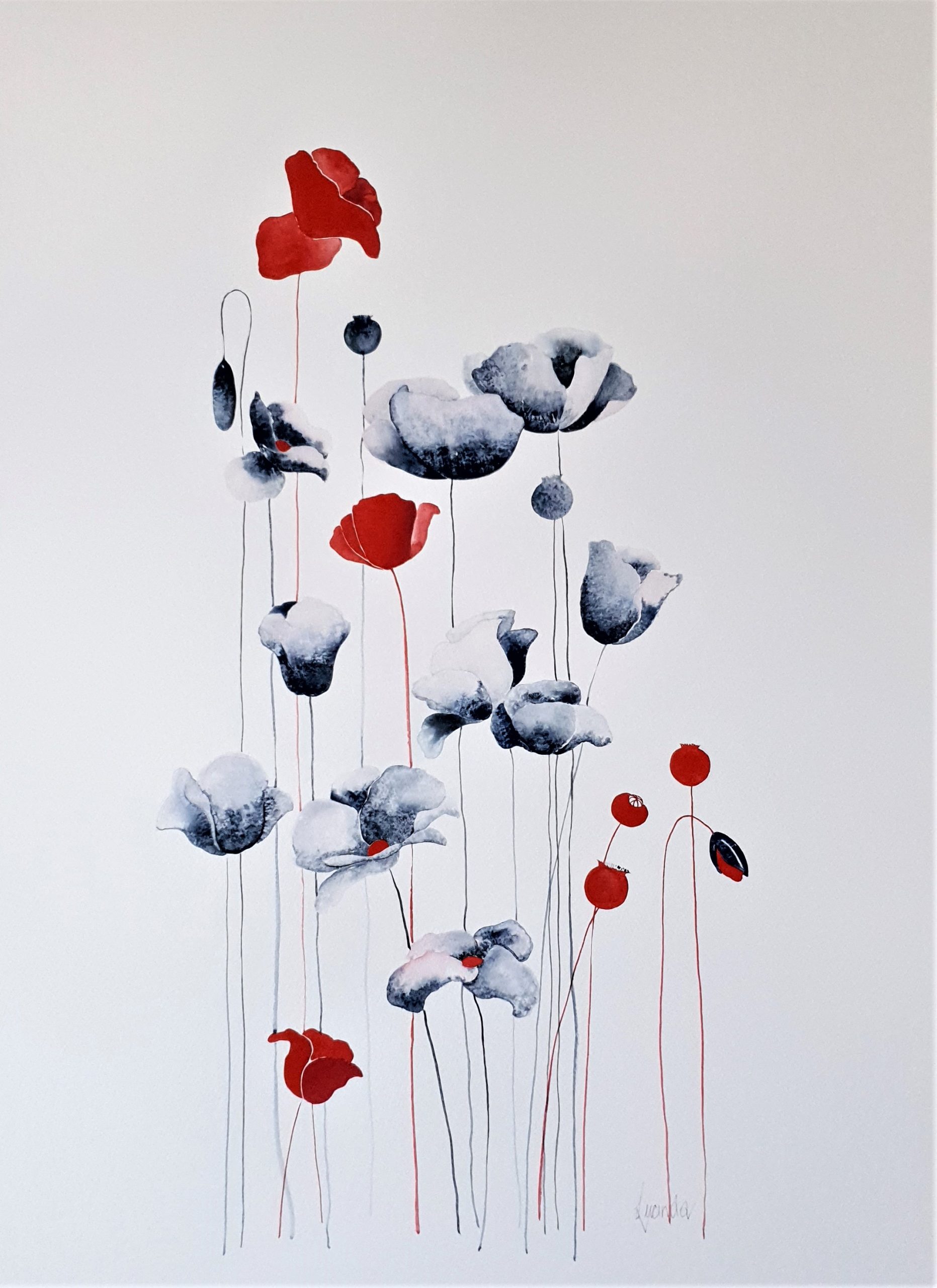 Love painting poppies – they are always so interesting as they reach up to the sun.