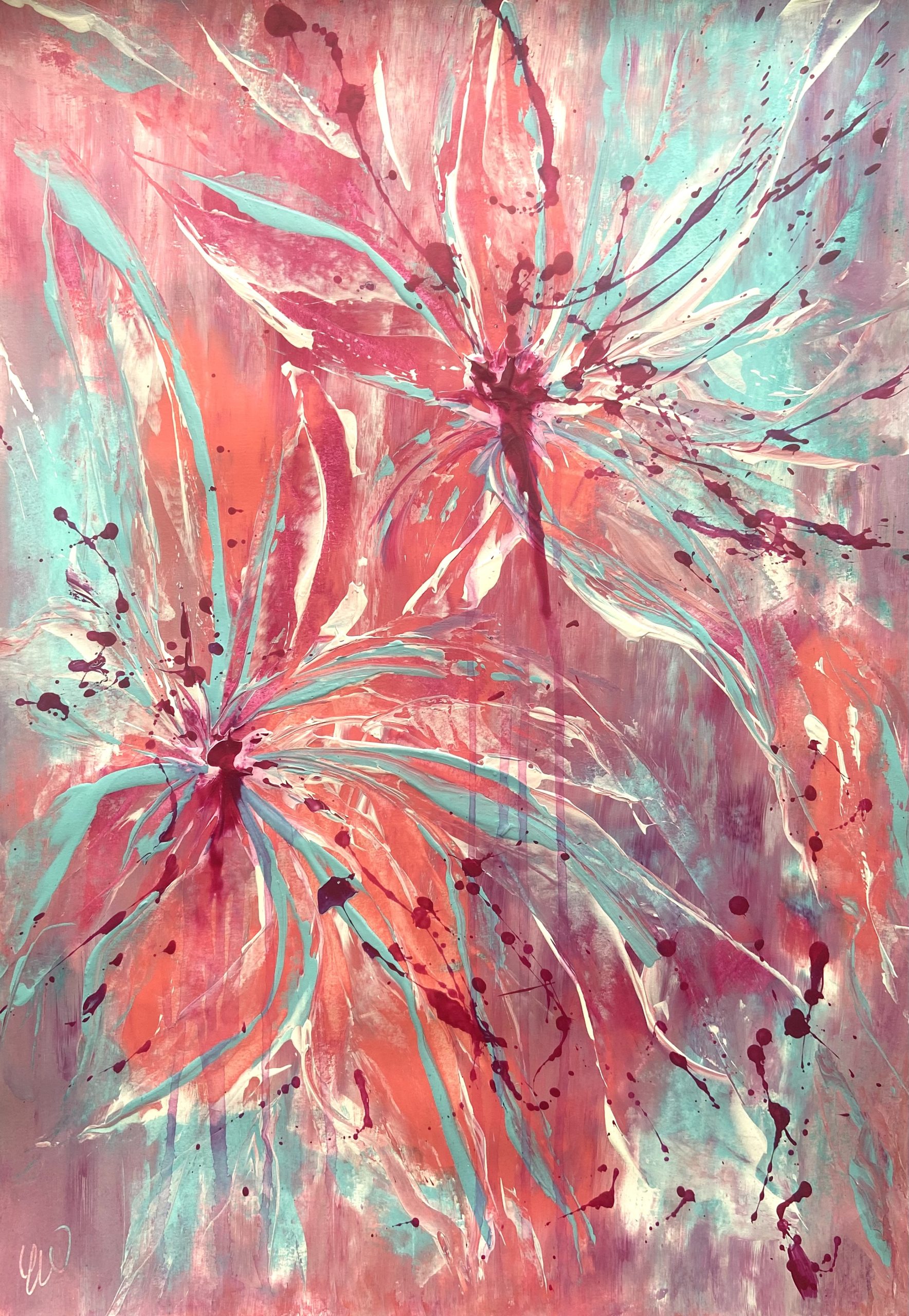 A beautiful abstract botanical piece with a tropical feel. Some images show what this piece looks like framed. Frames not included. 59.4 x 42 cm (A2 size) Acrylic on paper. Requires framing.
