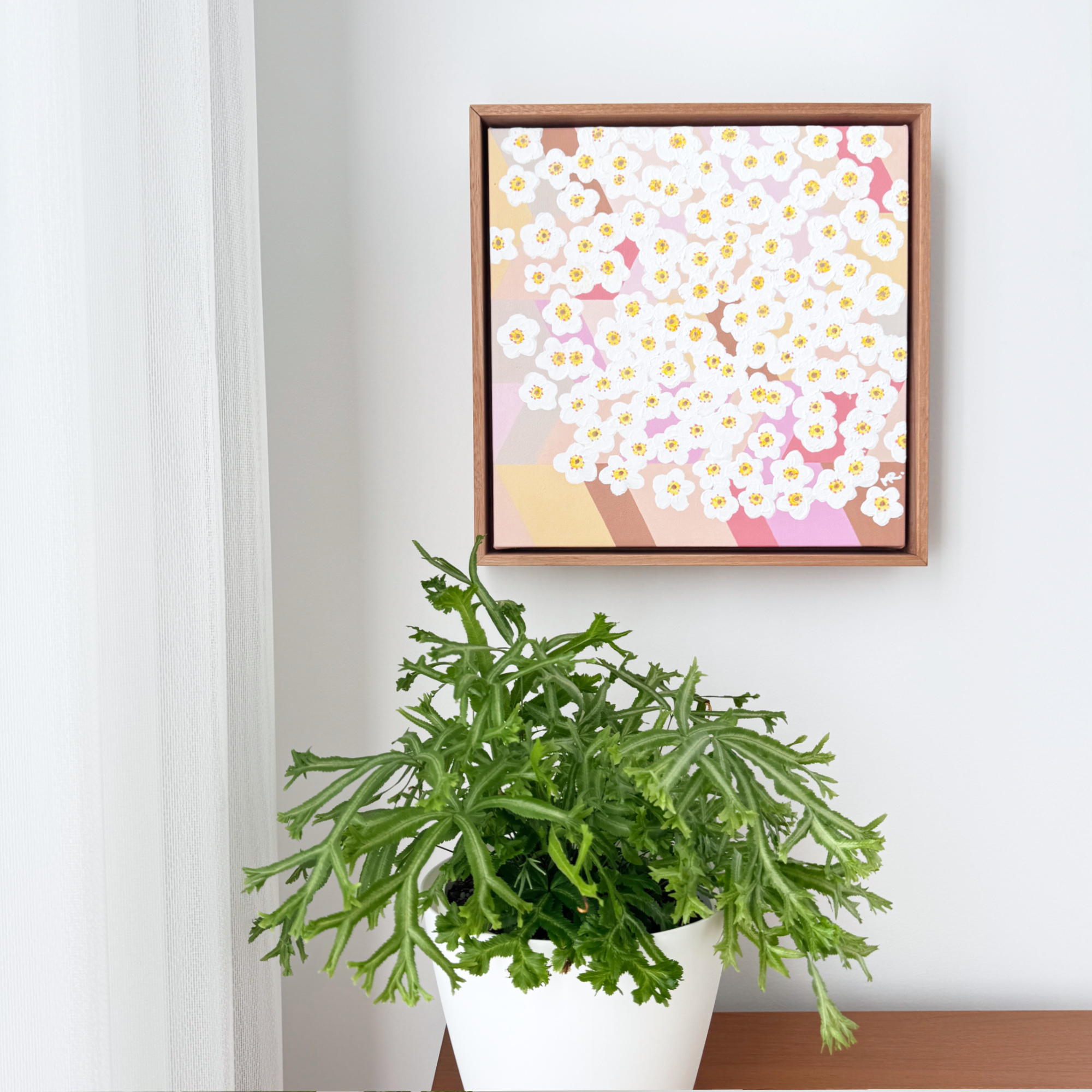 Constructed Bloom Study is a contemporary abstract artwork exploring the contrast between organic floral gesture and bold geometric structure. Textured, expressive blooms are layered against clean, hard-edged forms, creating a dynamic balance between softness and precision. The work brings colour, energy, and modern clarity to contemporary interiors.