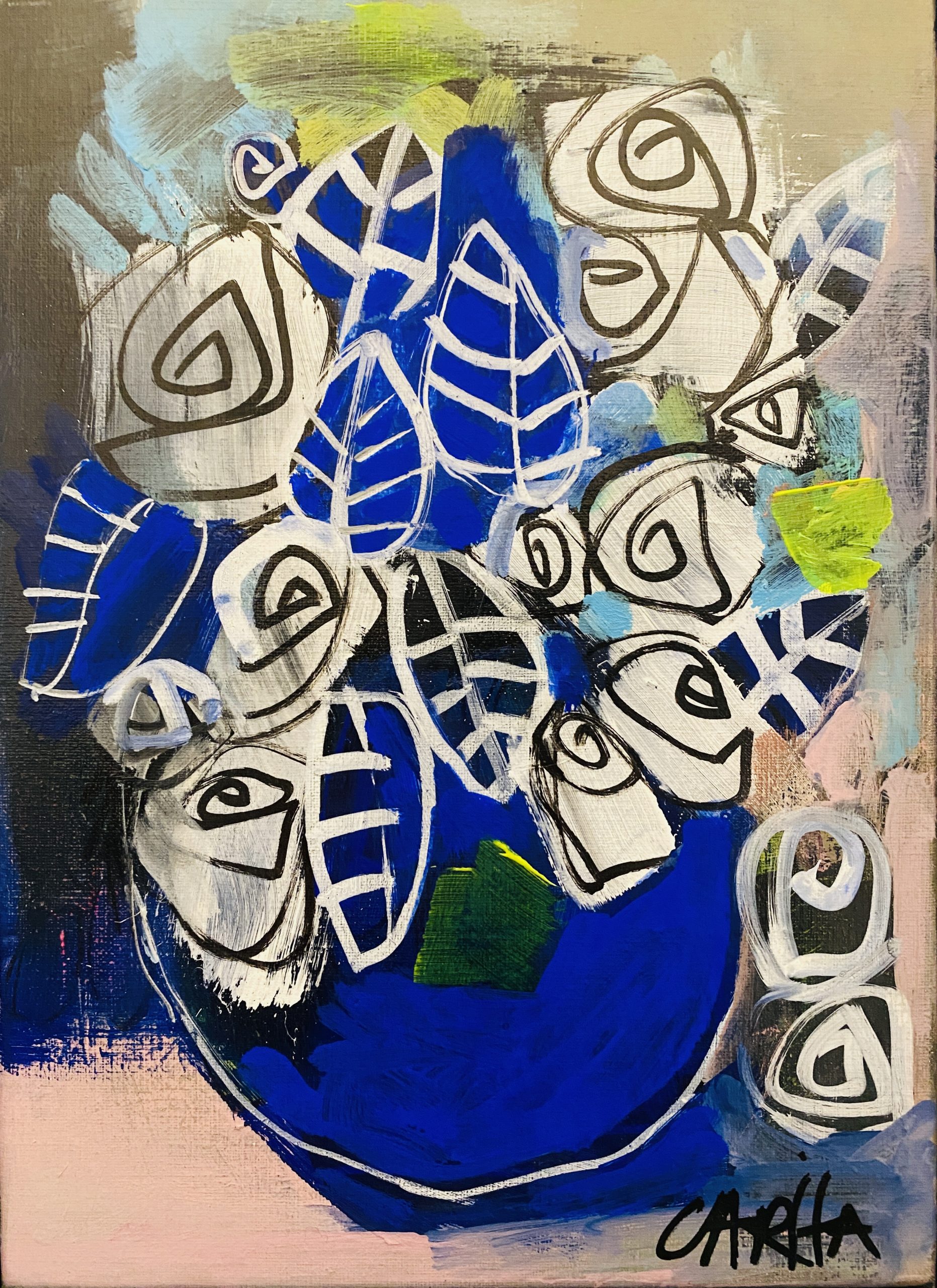 Carita is very experienced with commissions, allowing you to choose the size, composition and colour palette that suits you. Please notify us if you would like to discuss.