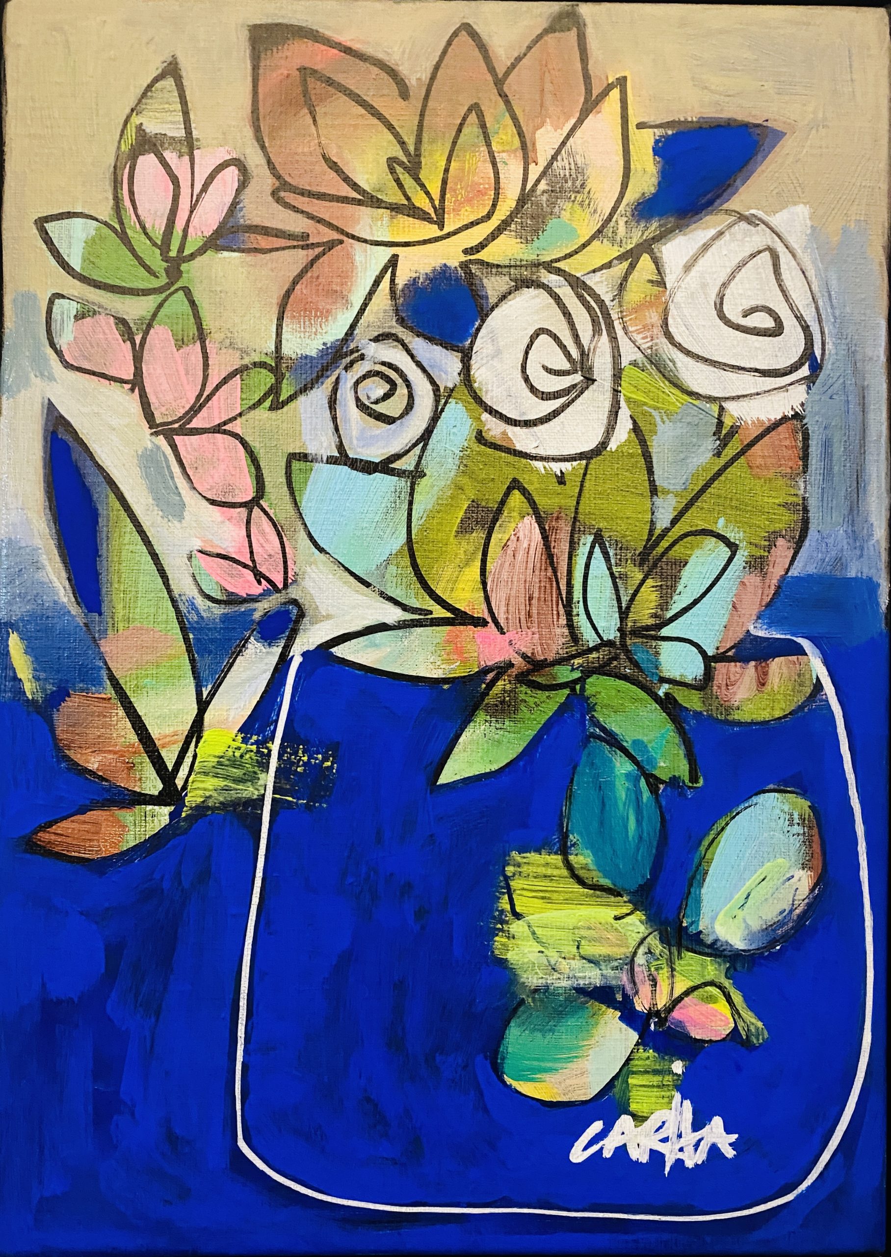 Carita’s highly original artwork is now attracting many collectors who are drawn to her unique use of edible colour palettes, intuitive mark making and signature illustrative twist. This artwork is part of the “Heirloom Seeds Collection’ of small studies that embody the colour, vibrancy, relaxation and earthiness of a lush, lazy, landscape.