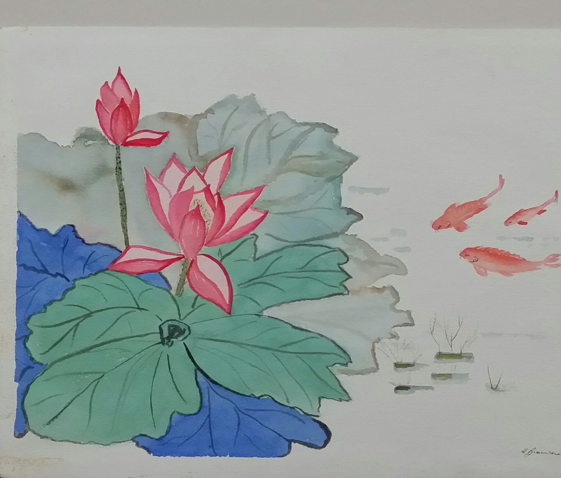 Chinese Fishpond by Heather Browne is a watercolour painting on quality Arches 300gsm cold pressed paper.