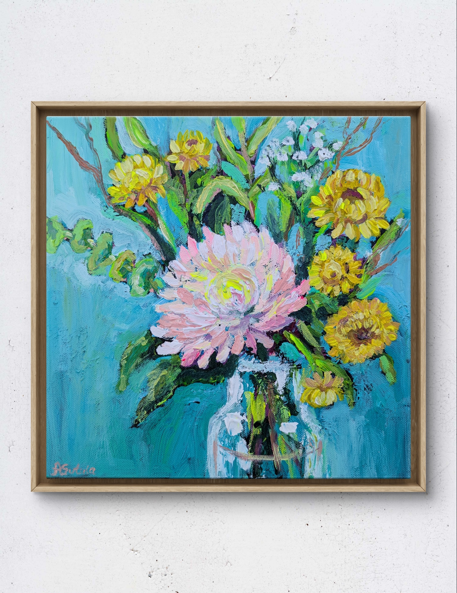 Chrysanthemum Joy by Anastasia Sutula – This is an original acrylic painting on stretched canvas, ready to hang, varnished.
