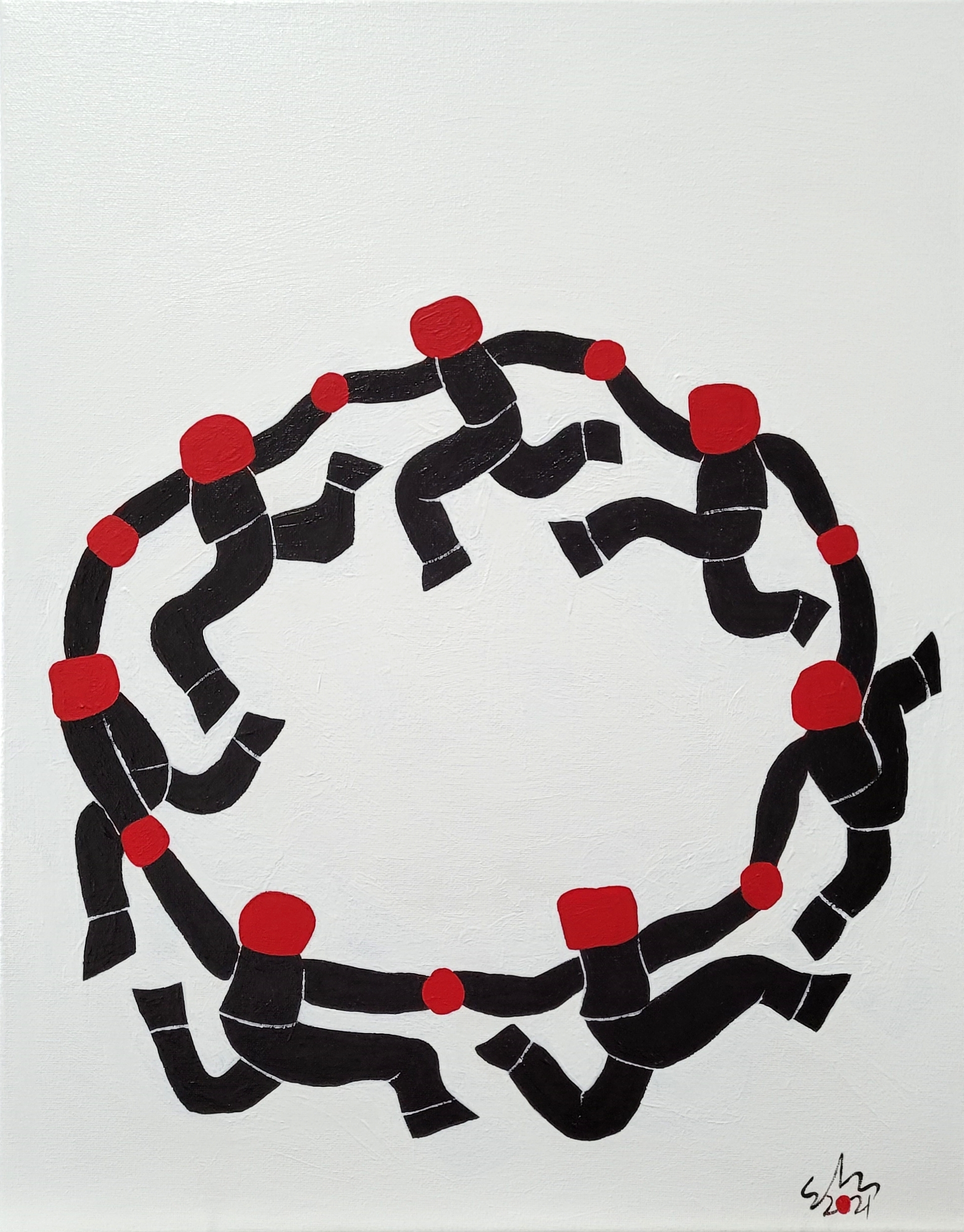 I recently painted two Circle Dance, labelled Black and Red respectively according to the dominant colour of each work.