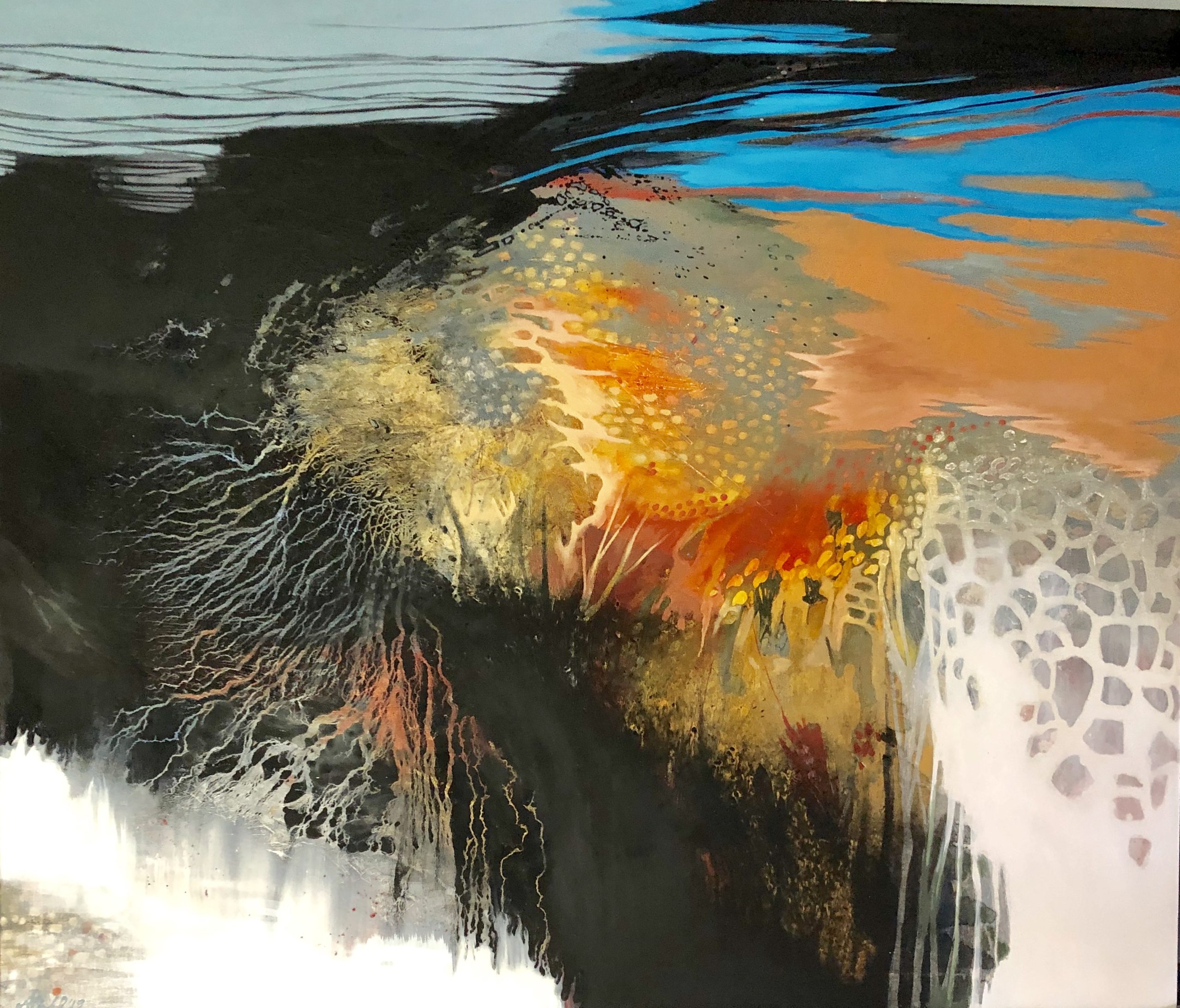 Mixed media – acrylic oil and textured gel on canvas