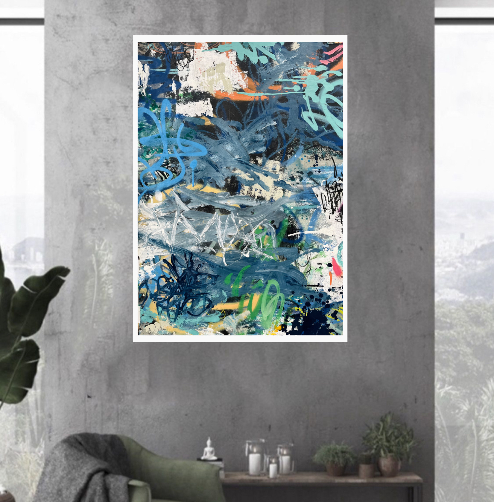 This artwork has a textured finish created by built up layers, a visual effect mimicking the look you would see in the street where this effect is created over time on Graffiti Walls & Advertising Spaces, Insitu examples are not to scale.