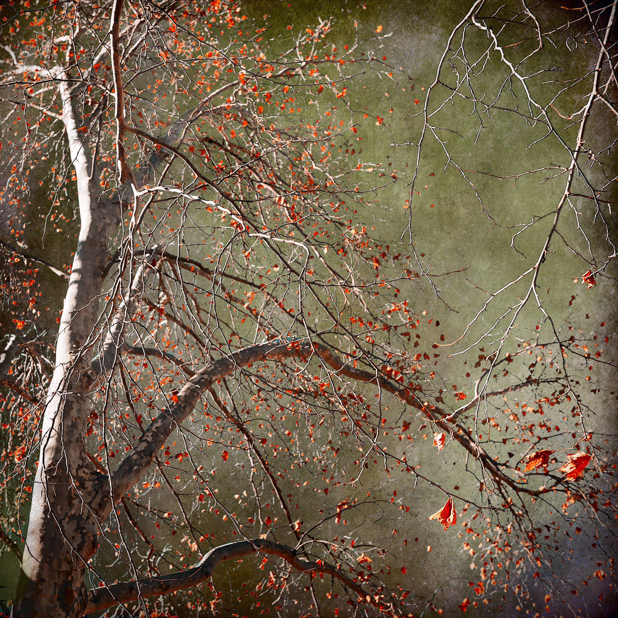 Looking to the concrete sky, the autumn leaves have largely fallen, signalling the approaching winter.
