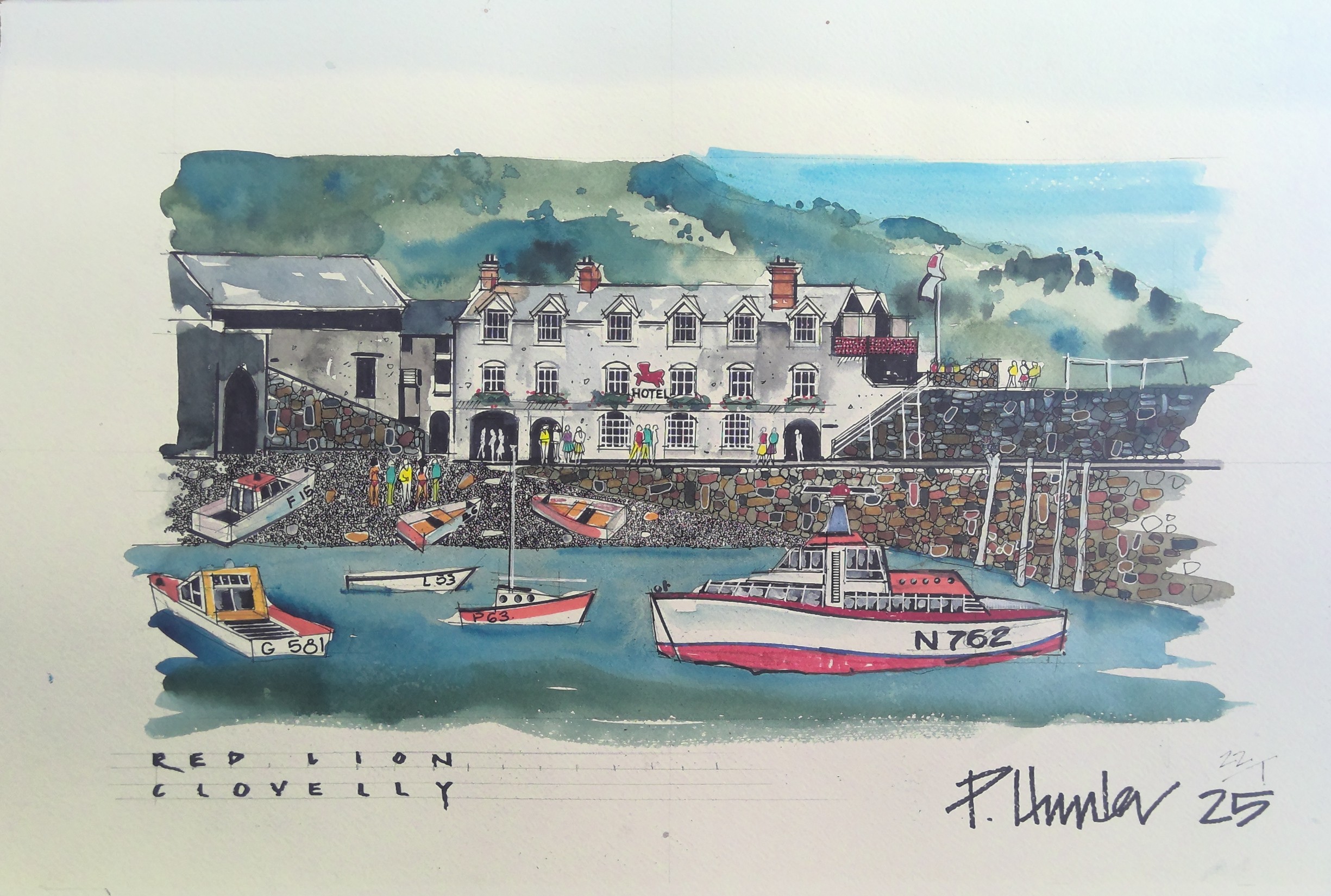 Clovelly UK Red Lion Hotel. Peter first visited Clovelly in the 1980’s. It is a privately owned harbour in Devon. You park at the top of the village and to get to the harbour you need to walk down a steep cobblestone street surrounded by cottages. At the Harbour is the Red Lion hotel. You certainly need a pint after arriving and to prepare yourself for the return trip up the slope. The Red Lion is a traditional English pub with great atmosphere.