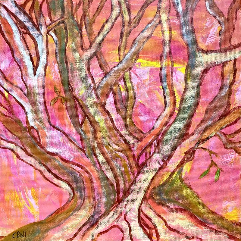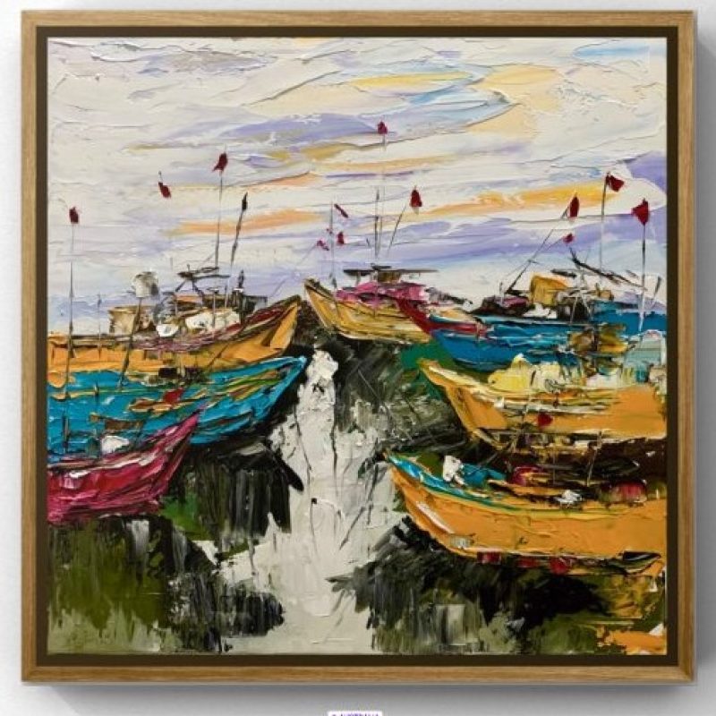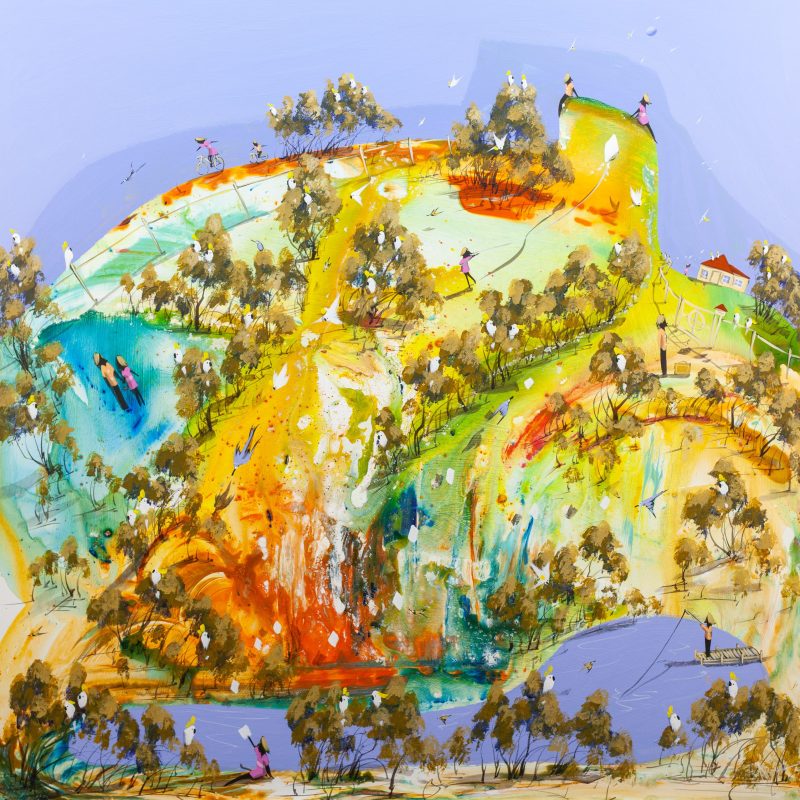 This piece is on stretched canvas and 2 coats of high gloss varnish have also been applied to protect the artwork. The gloss finish really makes the colours pop and gives the work a glassy finish. It has a wire at the back with painted edges, so it is ready for your walls. Or you may wish to add a frame directly through Art Lovers during purchase.