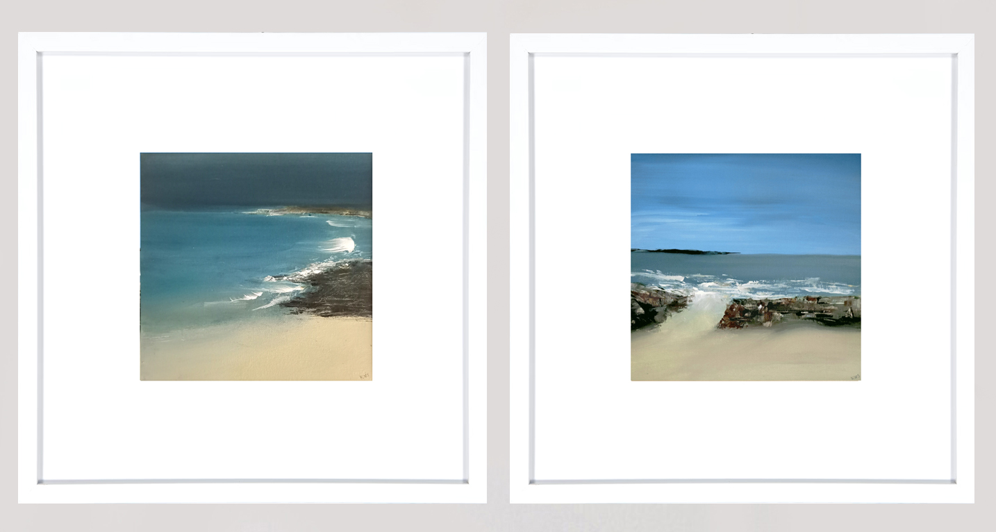 Each piece is 19 x 19 cm within a square 43 cm white frame.