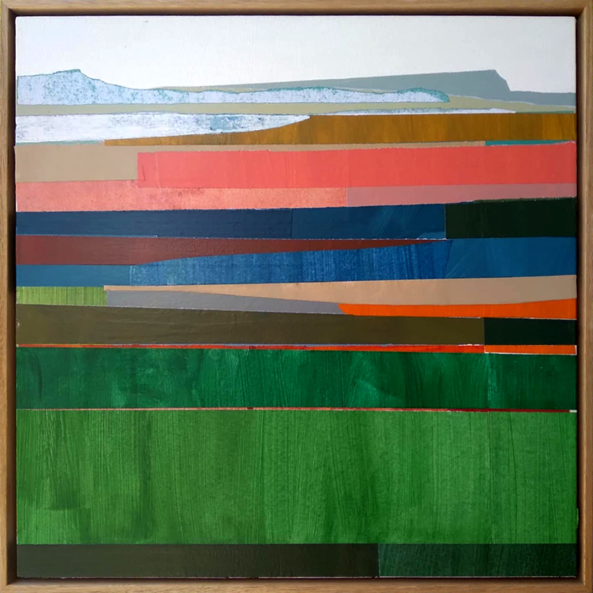 Coastal Dream – abstract lSeascape by Bozena Wiszniewski – this vibrant piece invites you to explore a landscape of color and form. Layered bands of rich hues—deep greens, warm reds, and cool blues—interact harmoniously, creating a sense of depth and movement. The artist’s playful approach to composition reveals a unique perspective on nature, encouraging viewers to find their own stories within the layers. Each section is thoughtfully crafted, showcasing a blend of textures that adds dimension and intrigue. Perfect for brightening up any space, this artwork serves as a daily reminder of the beauty found in simplicity and abstraction.