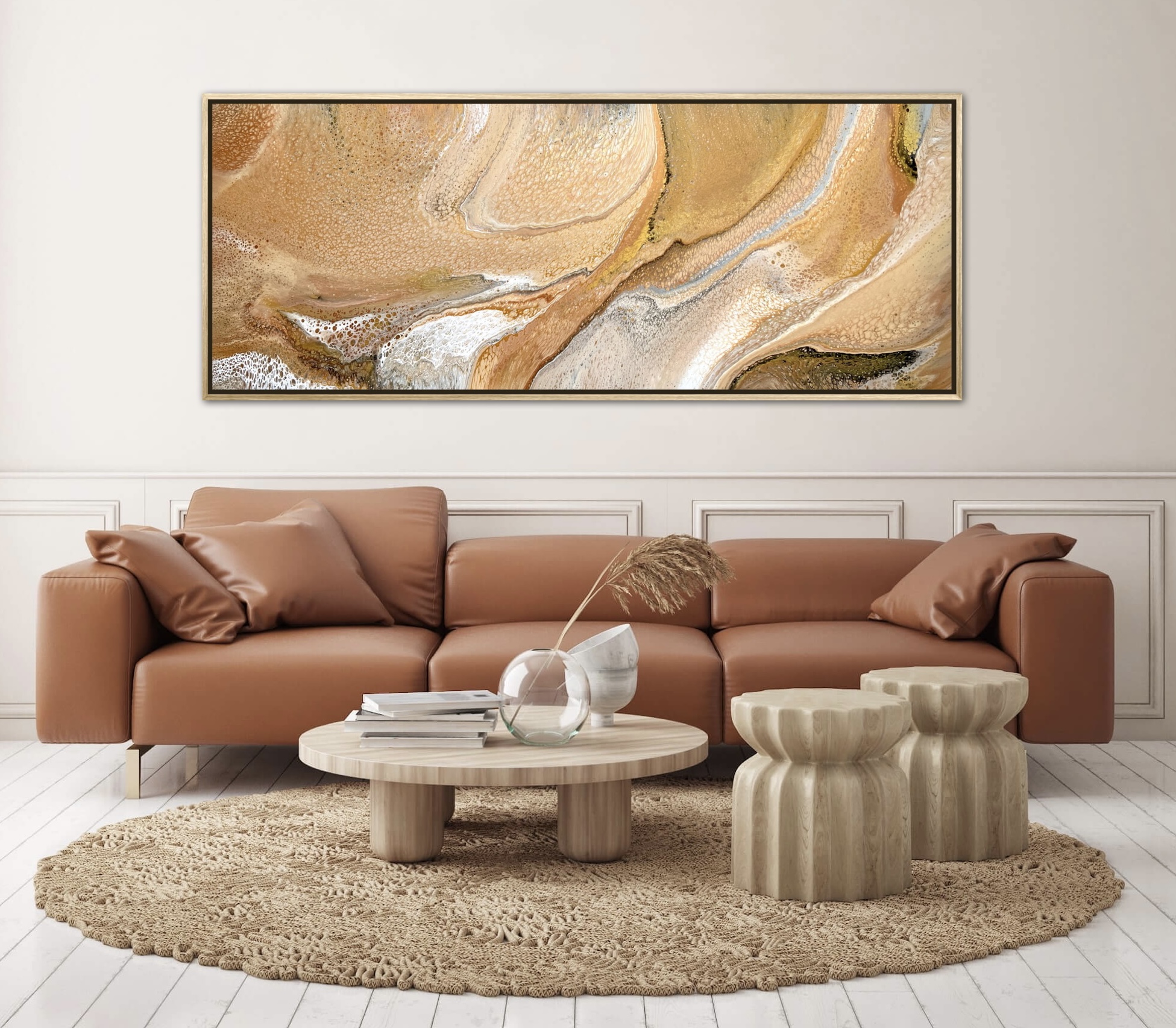 Coastal Sands by Angela Roskell – an extra large multi-directional abstract acrylic painting stretched and ready to hang.