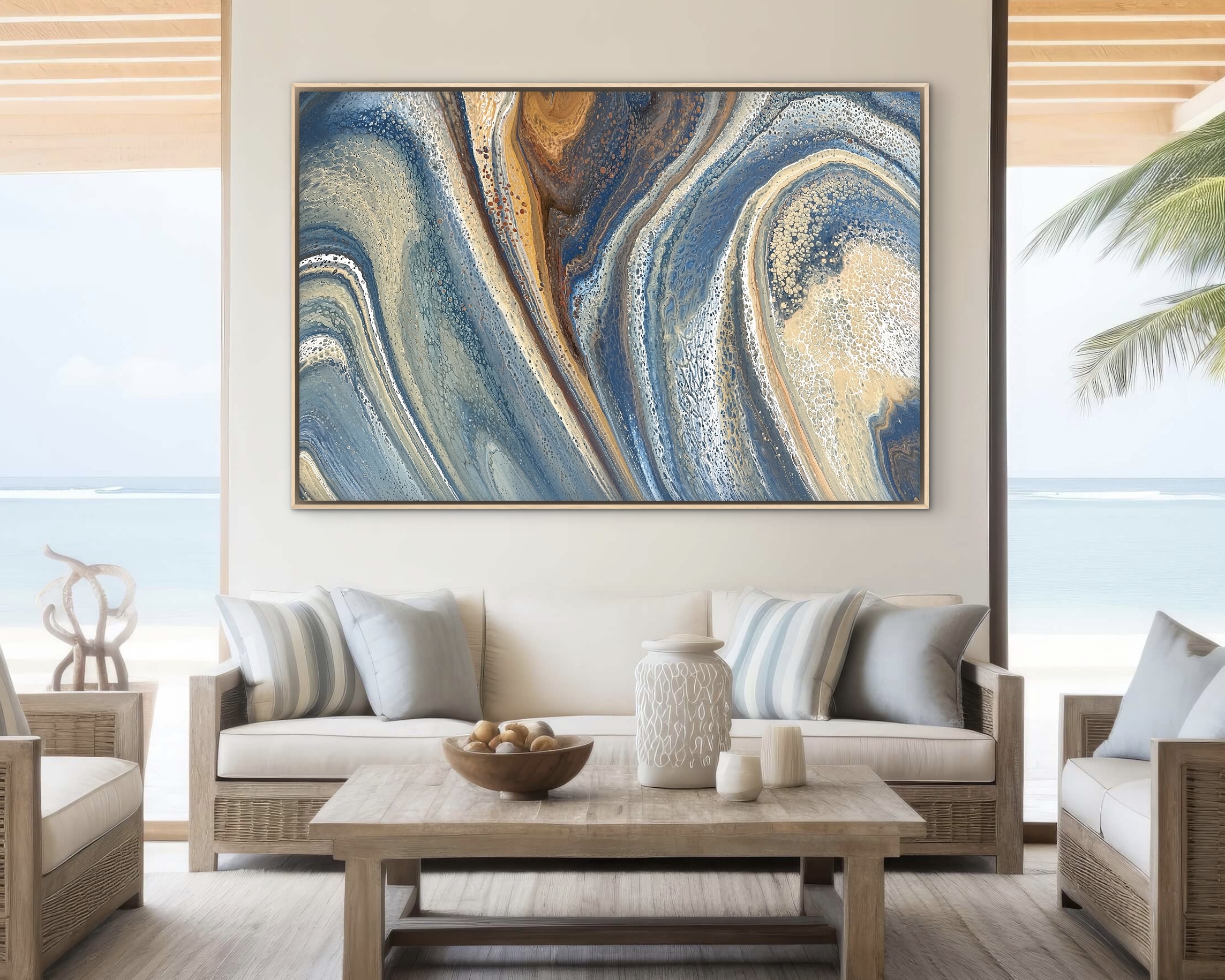 Sunlit Shore – ocean inspired, multidirectional extra-large abstract acrylic painting, stretched and ready to hang.