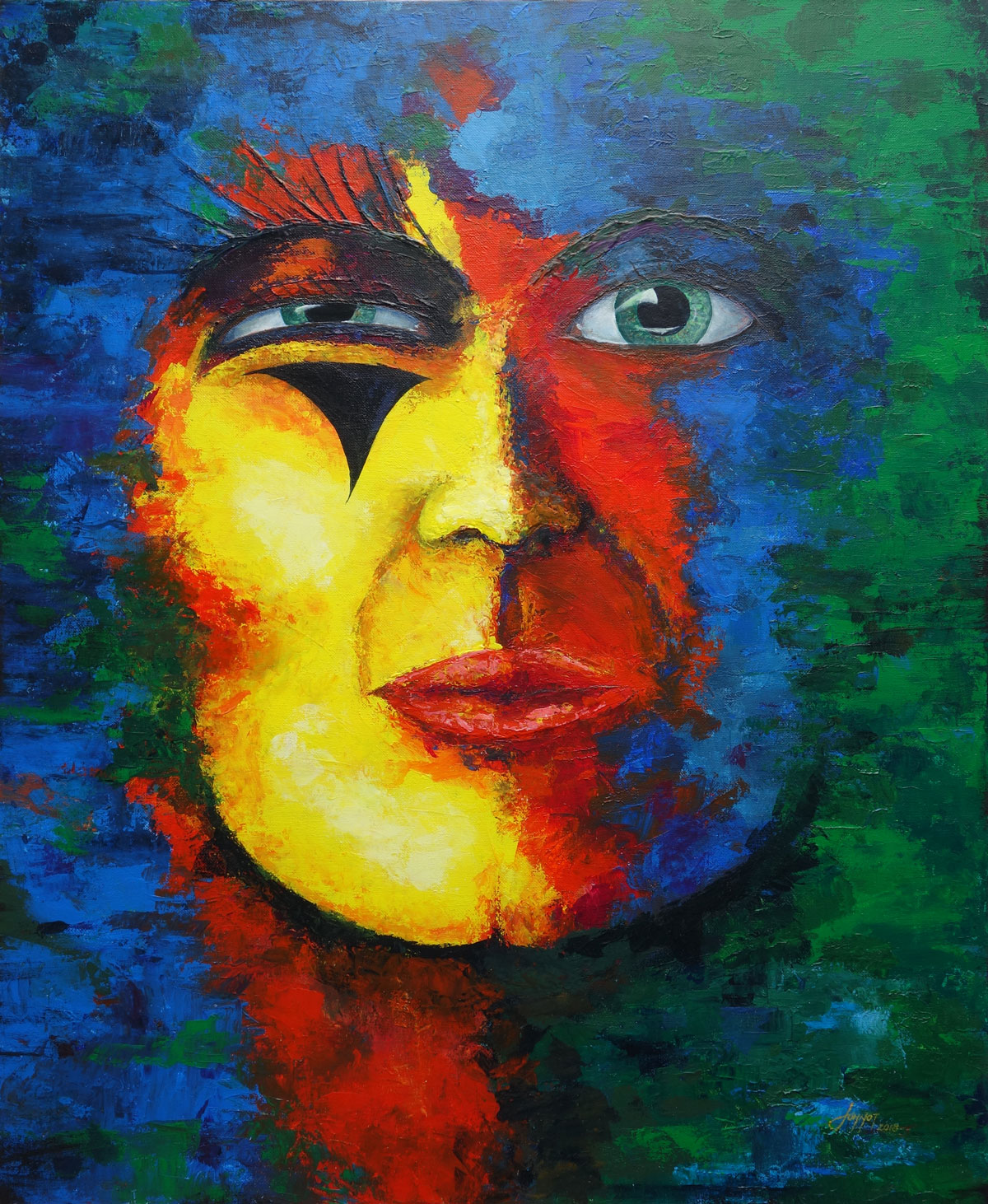 Original Art. Based on a doodle I did on the back of a beer coaster when bored at a Golf Club. She represents a female superhero. Atelier Interactive Acrylic painted on stretched canvas. Unframed but Ready to hang. 76cm x 60cm.