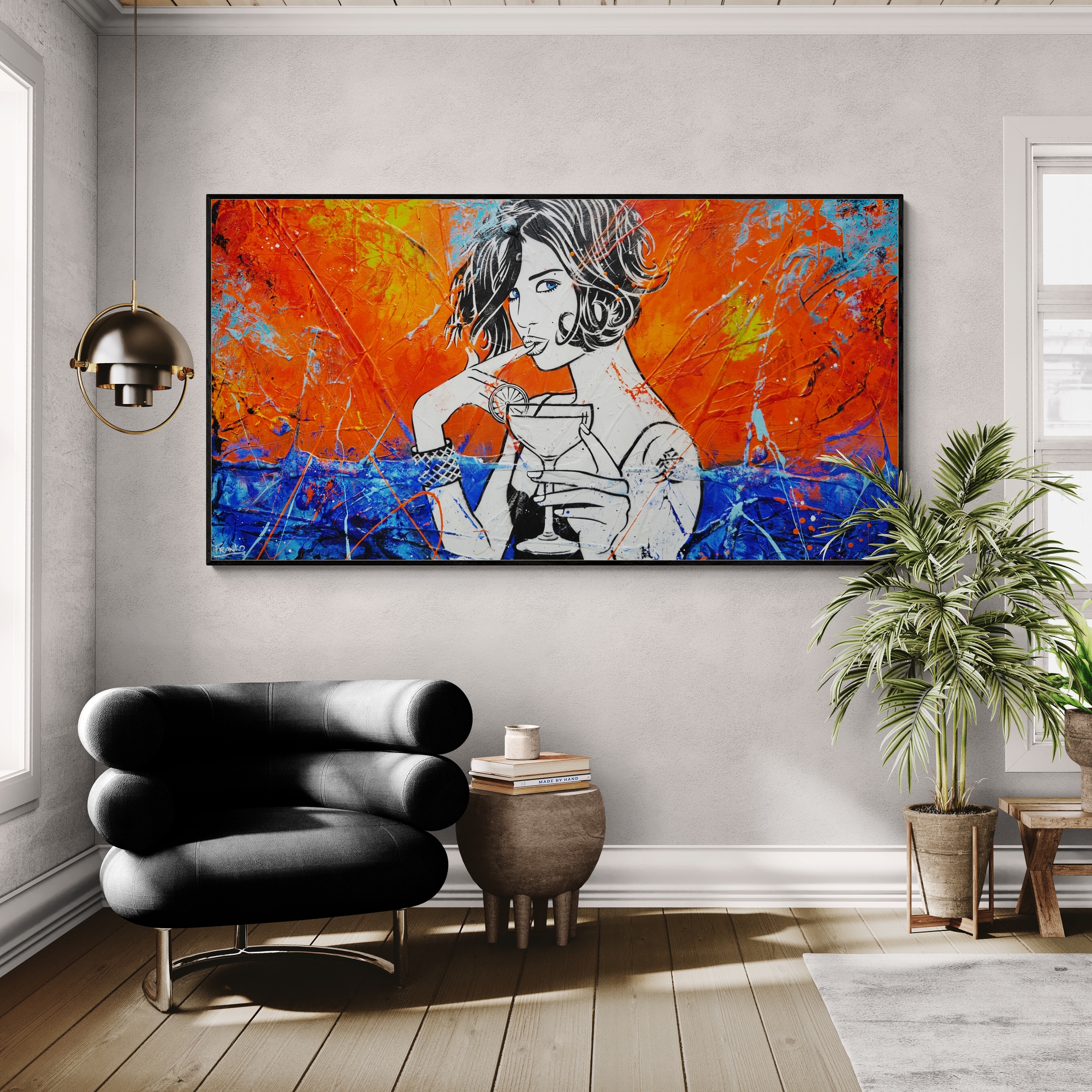 Provided with listings are some insitu images. We strive to ensure they are accurate in scale. Sometimes we will add an external frame to the painting insitu, to provide a vibe for how that would look also. As mentioned above, my pieces arrive ready to install with gallery finished edges and honestly, most people don’t add external framing. However, it is of course an option. If you have any questions, please let me know. We are here to help and want to make it as easy as possible for you if your décor aspirations require it.