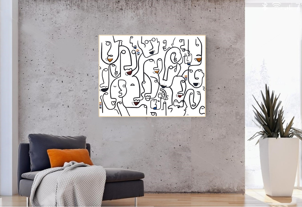 ‘Coffee Mania’ by Chris Cox is all about people who enjoy a hot beverage. Our culture and our way of life usually includes a cup of coffee or tea to kick start the day for us. This piece showcases different people going about their daily routine, whether it be at home or at work or at the local cafe for a well earned break. If this is you, this would make a great statement for your wall and says something about you while being stylish and elegant. This piece will suit most interior design applications as it predominantly neutral with some small splashes of colour.