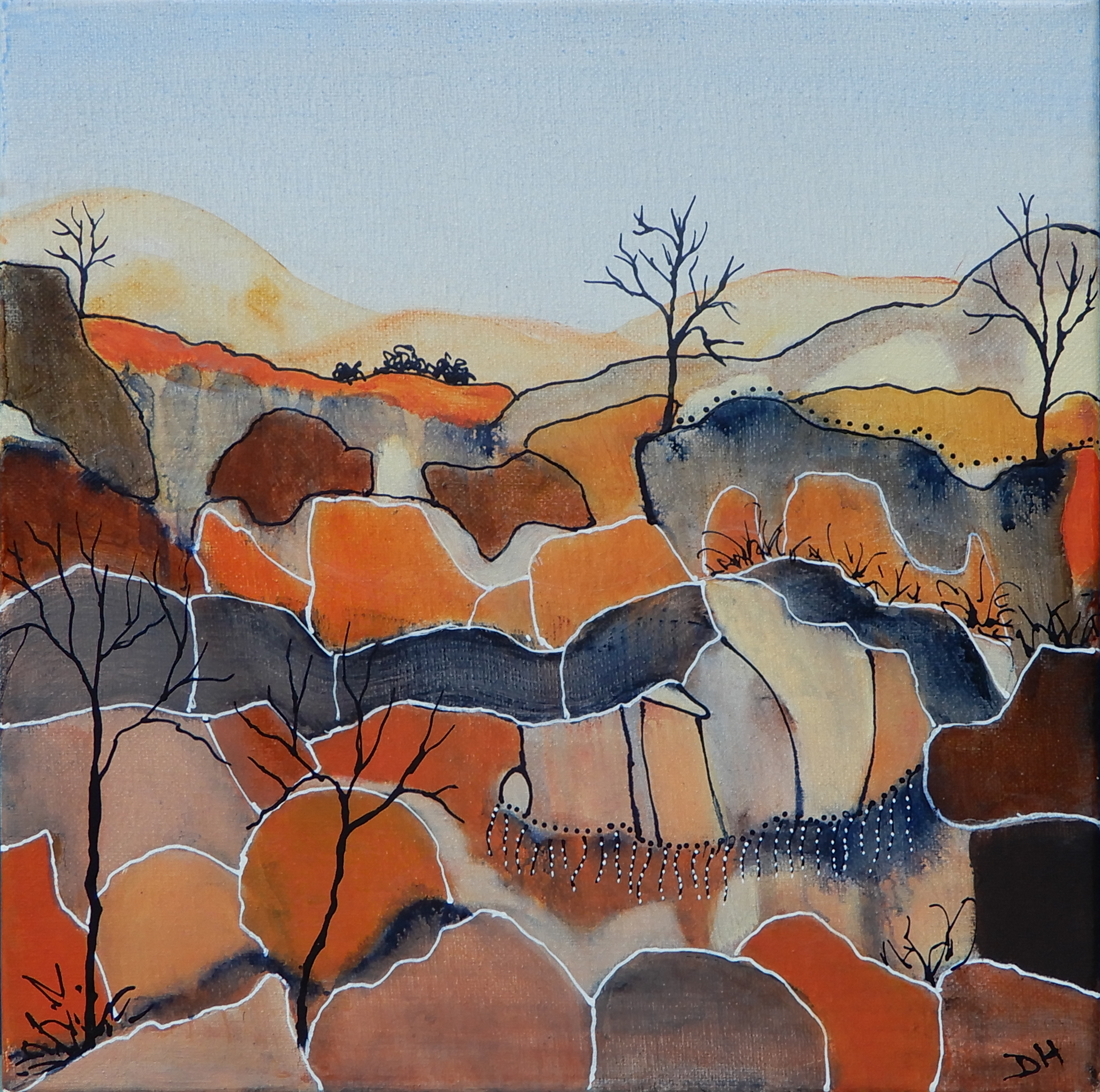 This is one of a series of small paintings taken on as a bit of a challenge. It’s quite difficult moving from large to small canvases when you’re a gestural painter but something it’s good to get your head around. And your hand! I quite like the colour palette in this one. I use the same colours in most of my paintings but depending on how they’re mixed, each painting can look quite different.