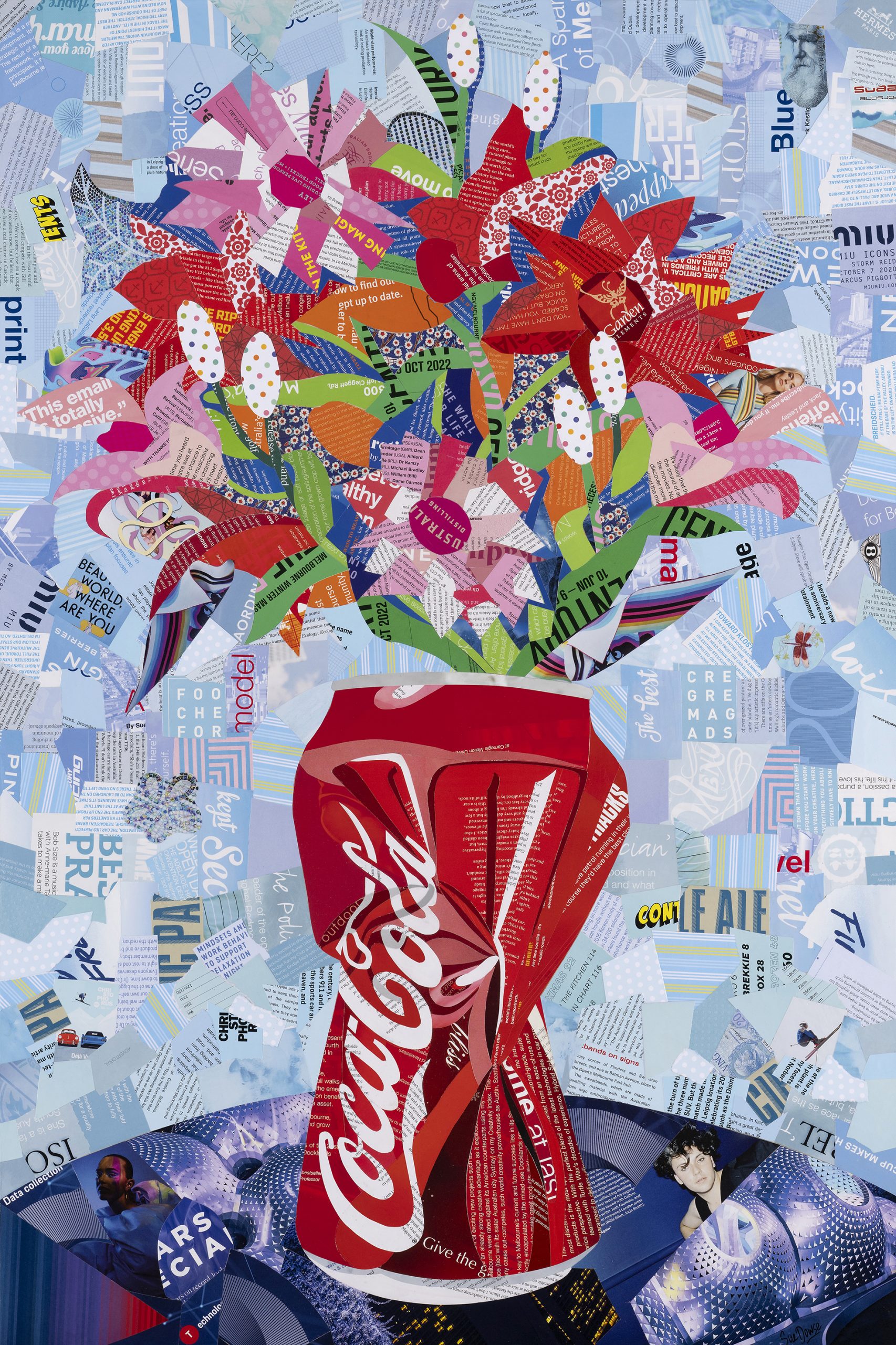 Coke Can Bouquet by Sue Dowse  Original Collage