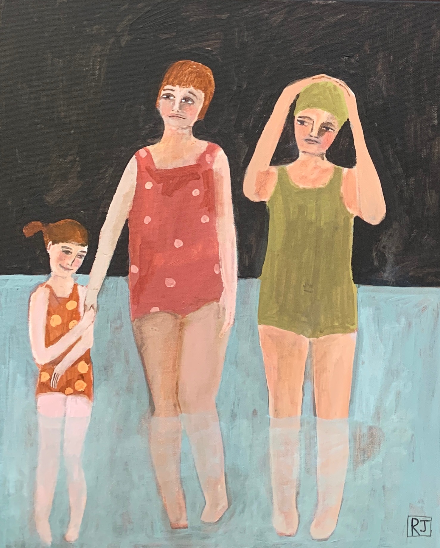 I hope that my art captures something true about the world — the beauty of the ordinary, the complexity of human interaction, the intensity of an emotion. My art is largely figurative and I attempt to represent what I see and experience with a sense of appreciation and humour. My work is colourful and eye-catching and can tend towards the naive, sometimes incorporating elements of fantasy. I like my art to tell a story, to prompt the viewer to think ‘I know exactly how that feels,’ or to inspire a sense of joy, longing or nostalgia.