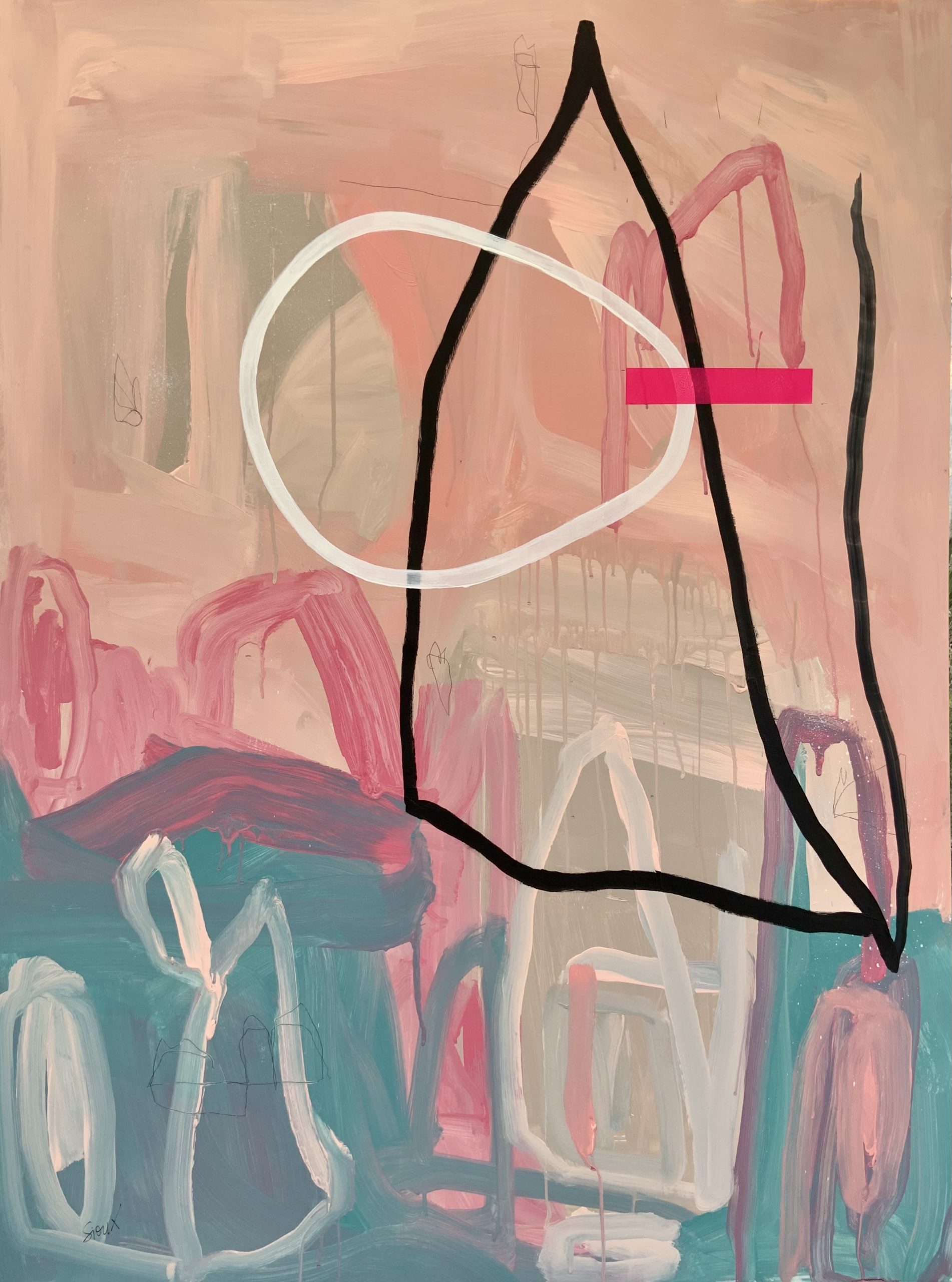 Collision 14 by Sioux Tempestt – From the ‘Collision’ series of paintings exploring the dynamic interplay between colours, forms, and shapes. The abstract painting captures the essence of dynamic intuitive mark making overlaid with highly intentional shapes to form beauty. Forms and colours meld in a dance of artistic expression, creating a striking composition to challenge traditional notions of aesthetics.